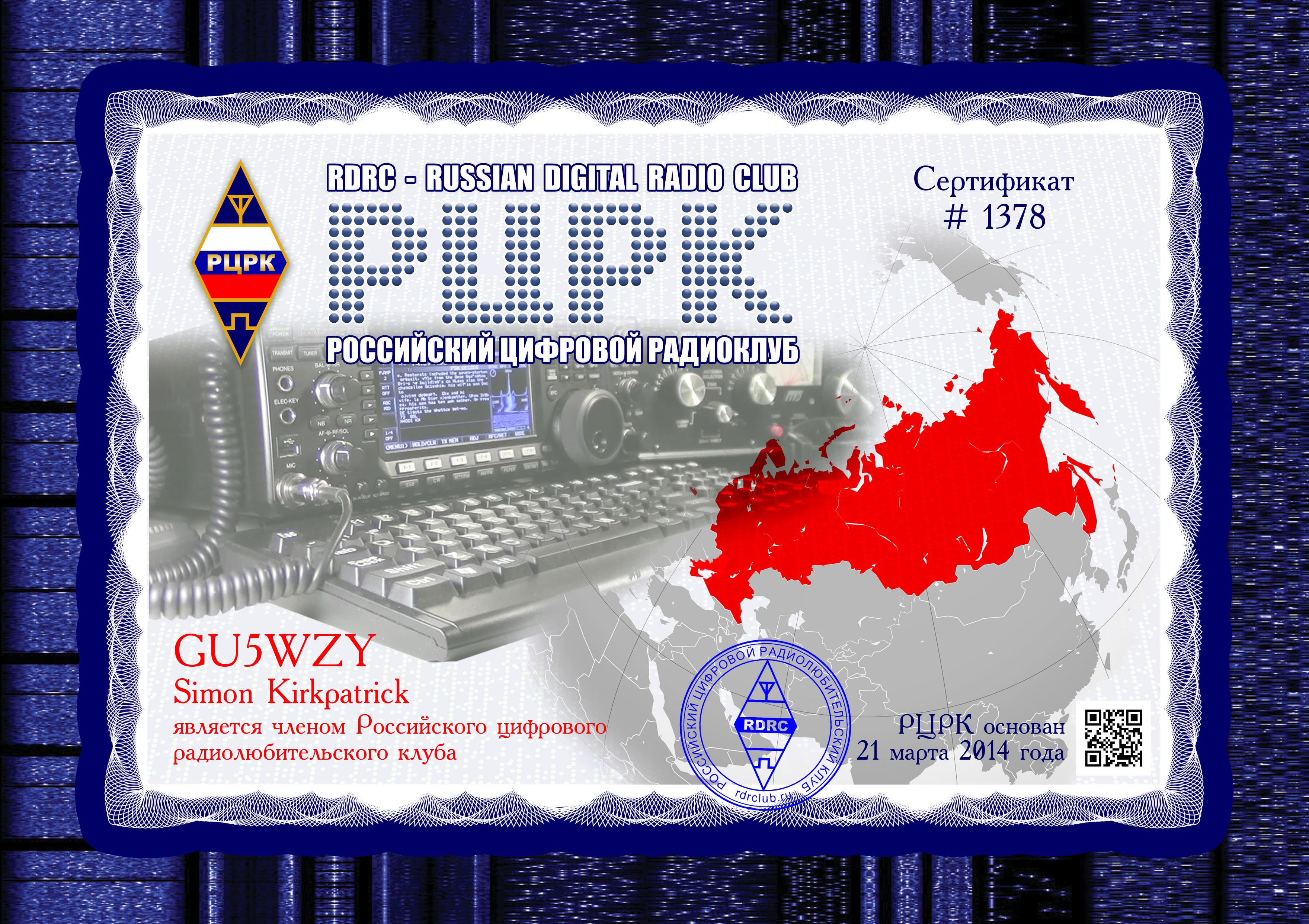GU5WZY Certificate of participation Amateur Digital Radio Award 2021 |