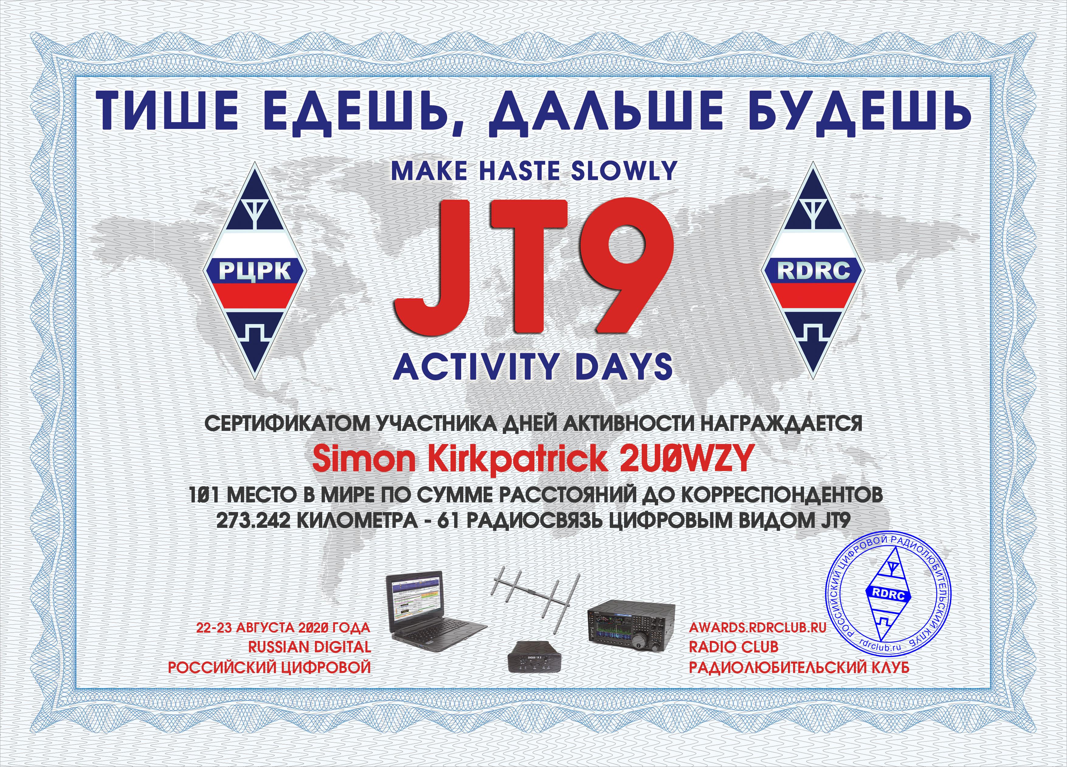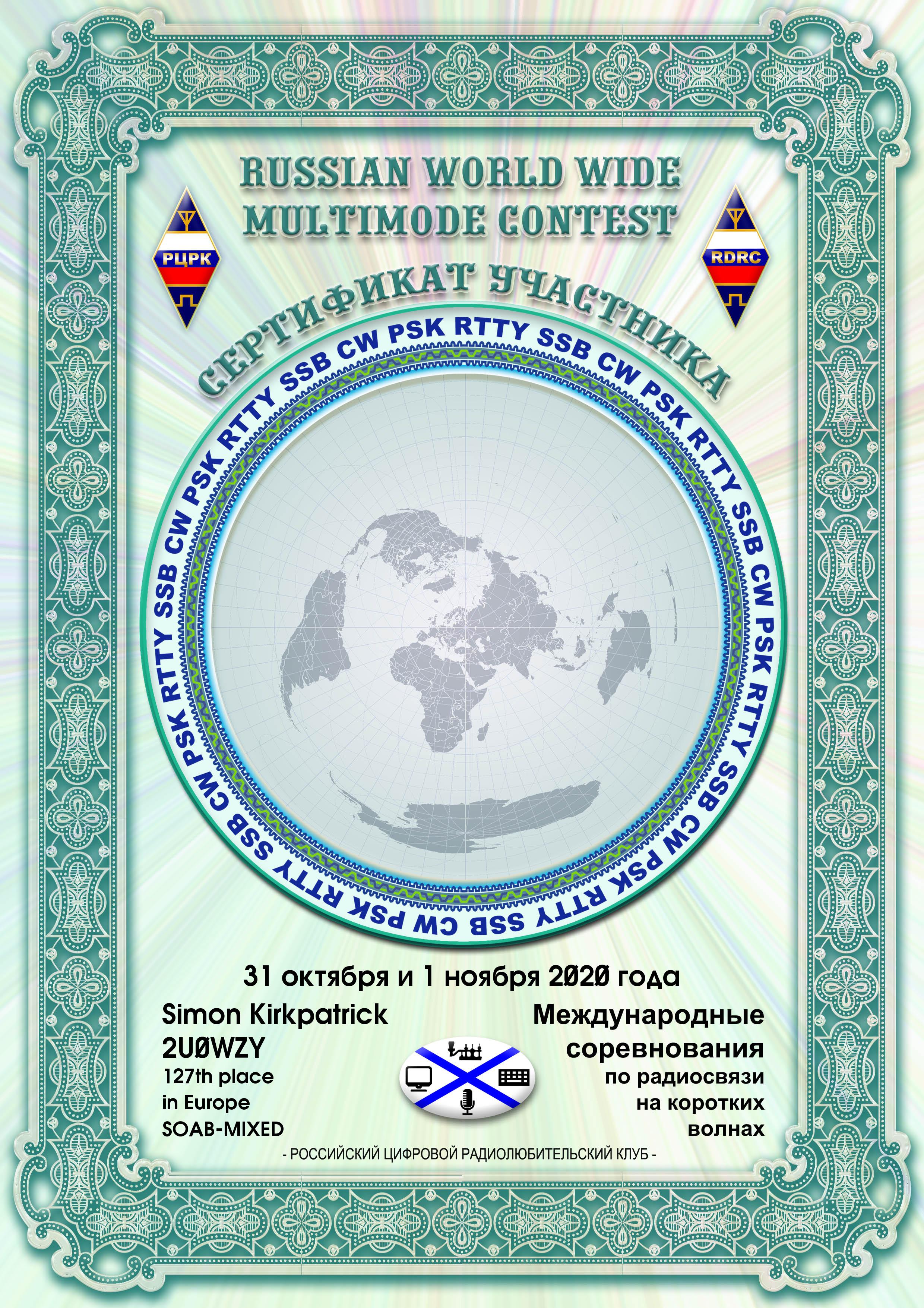 2U0WZY Certificate of participation RUSSIAN WW MULTIMODE CONTEST 2020 |