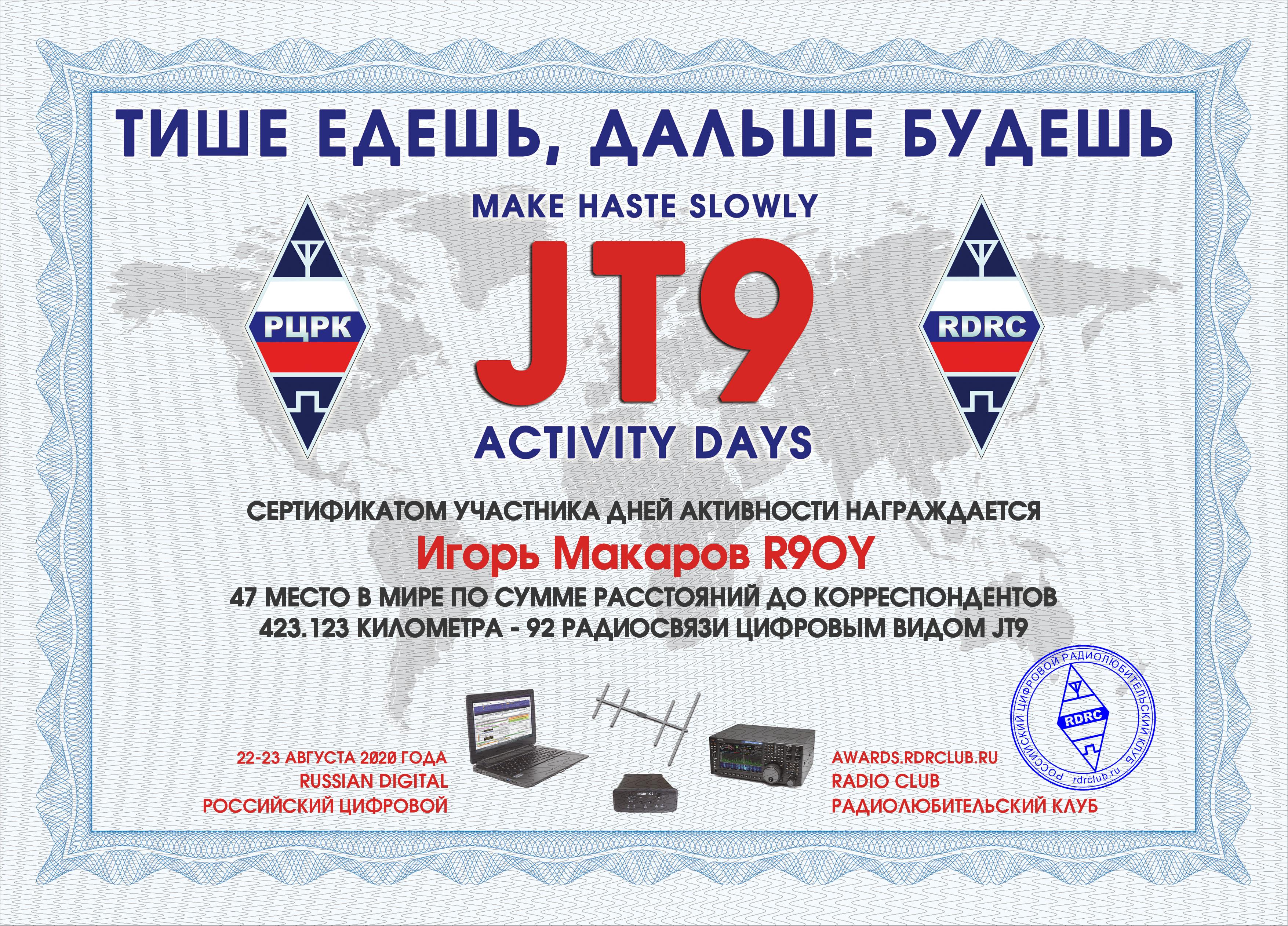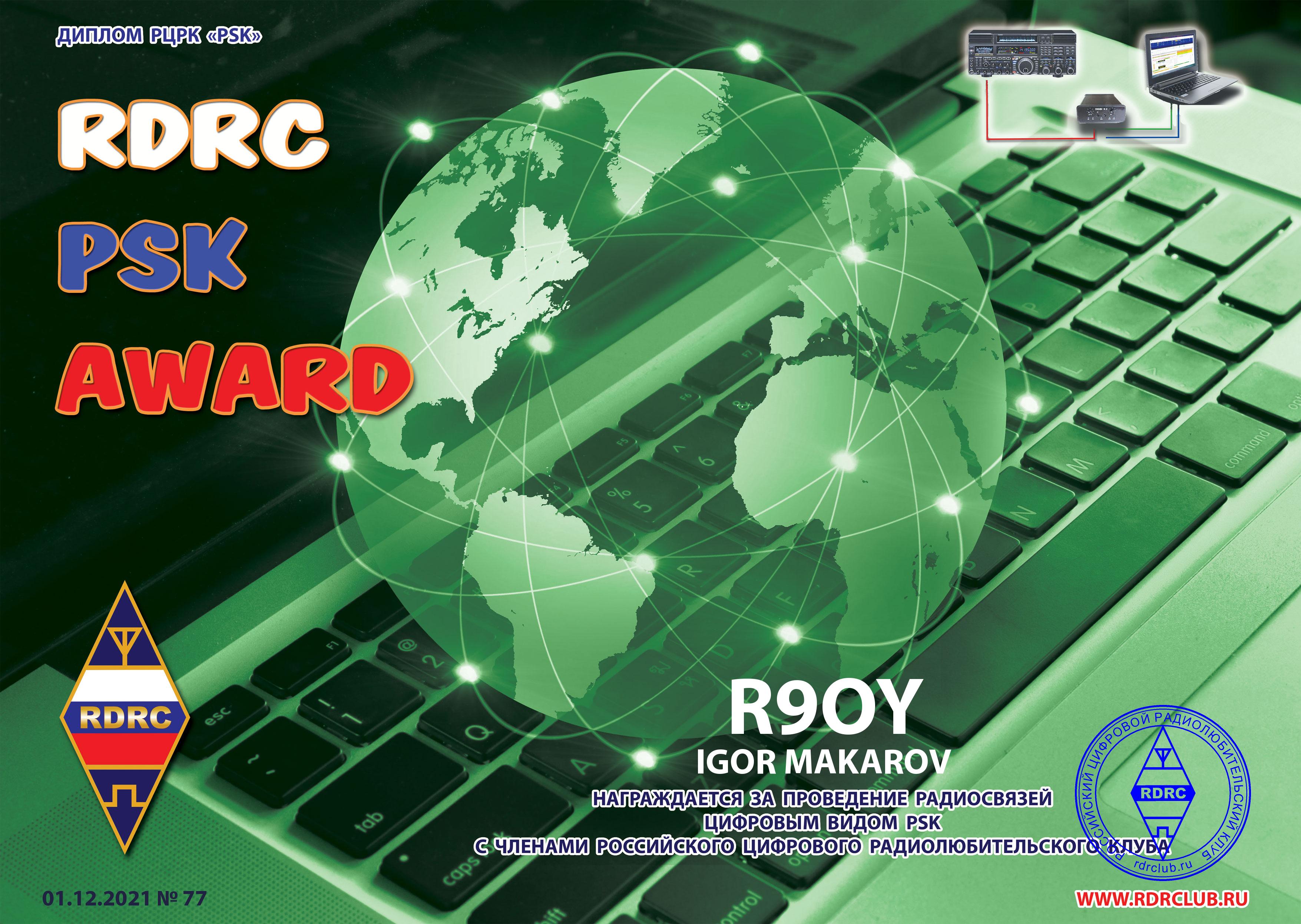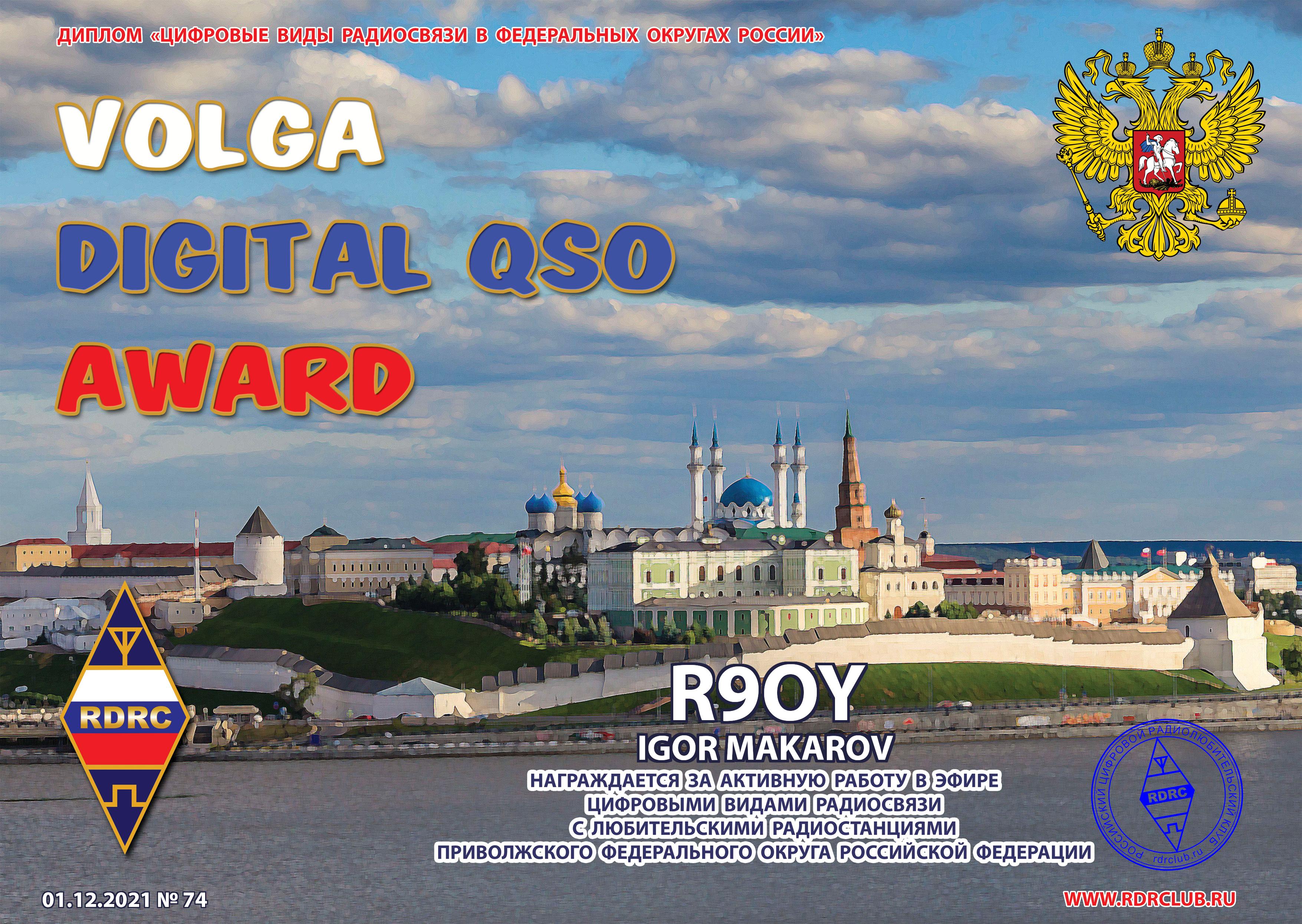 R9OY Certificate of participation Amateur Digital Radio Award 2021 |