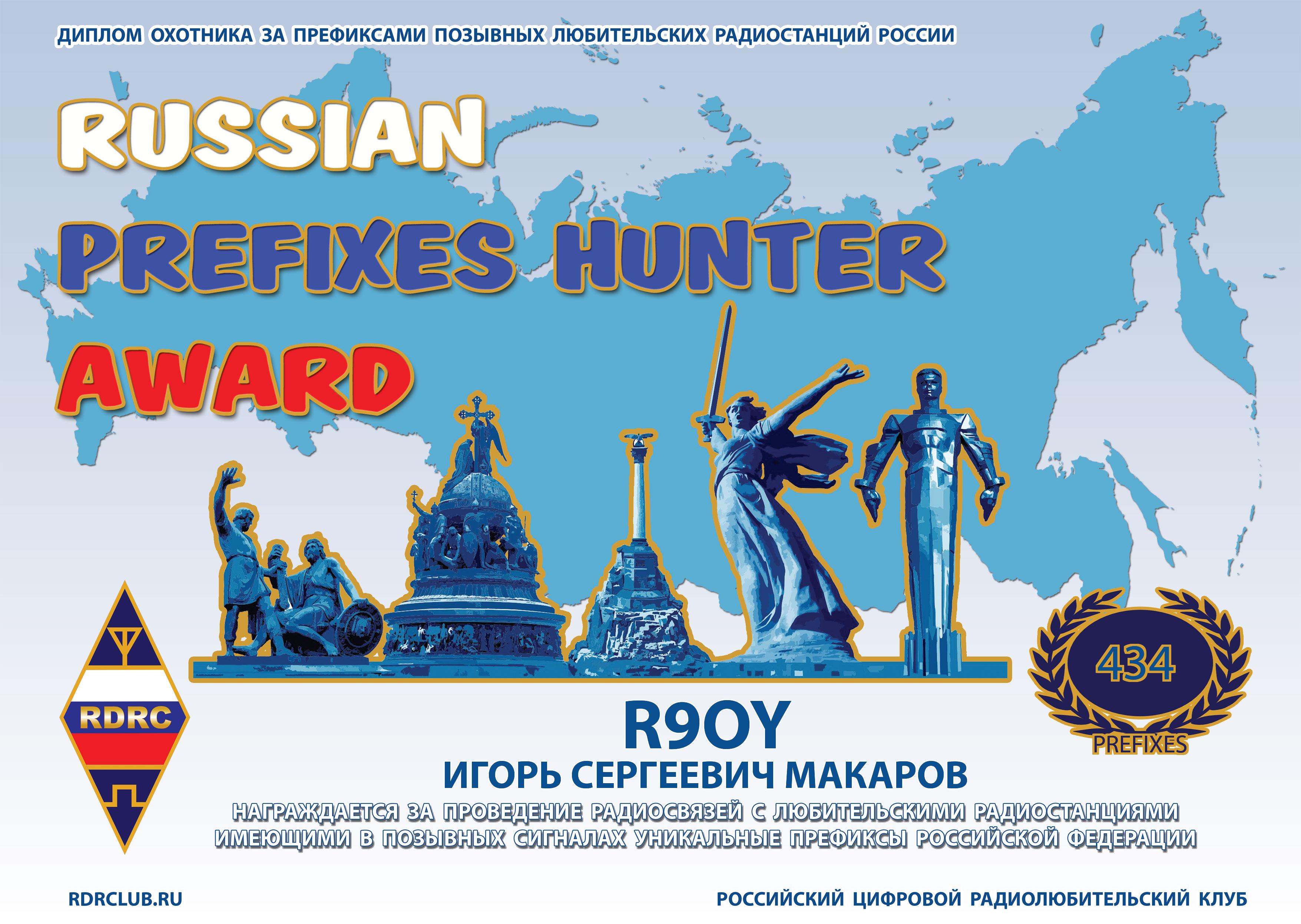 R9OY Certificate of participation Russian Prefix Hunter Award 2023 |