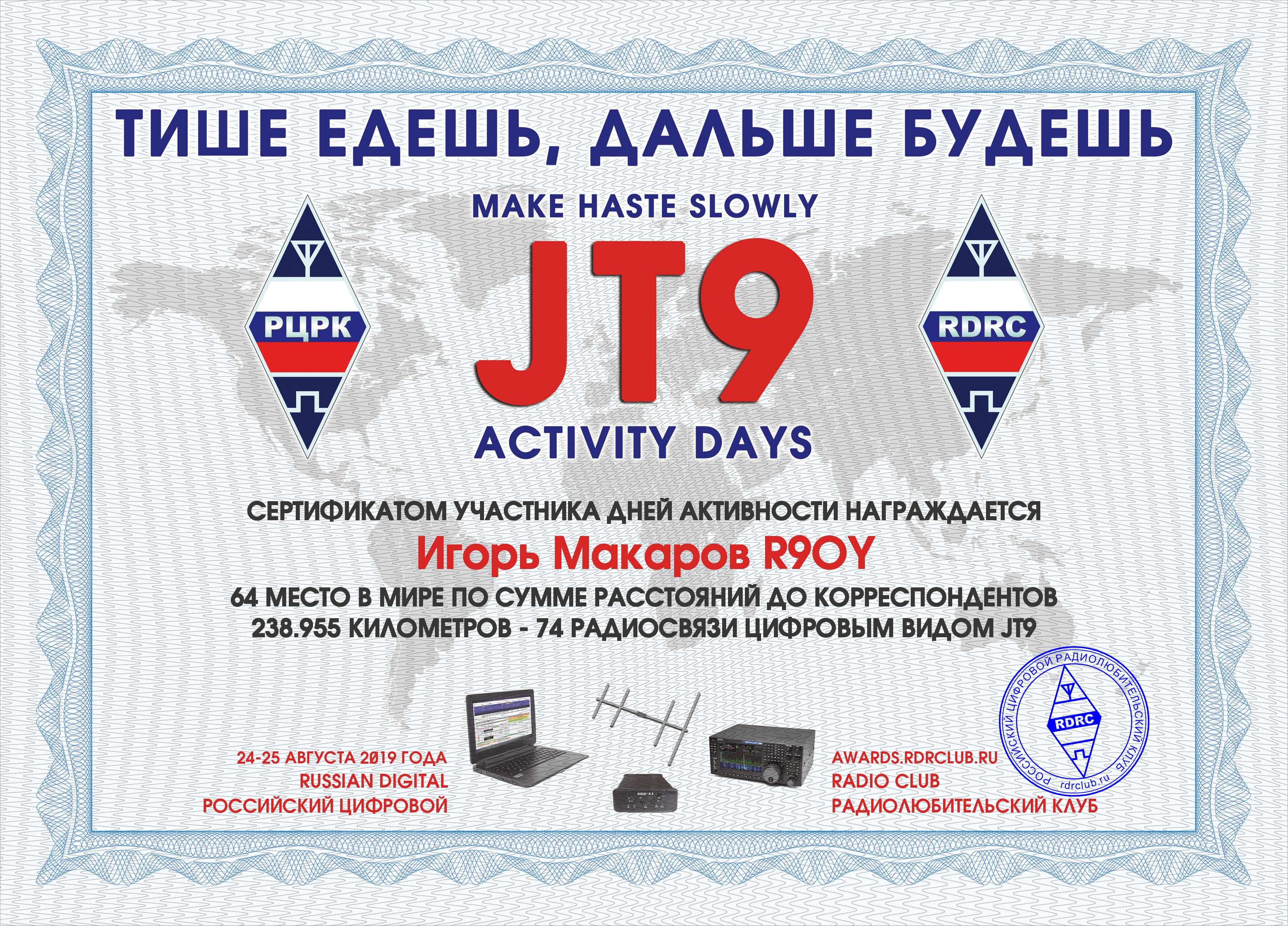 R9OY Certificate of participation CLUBLOG DX ACTIVITY 2019 |