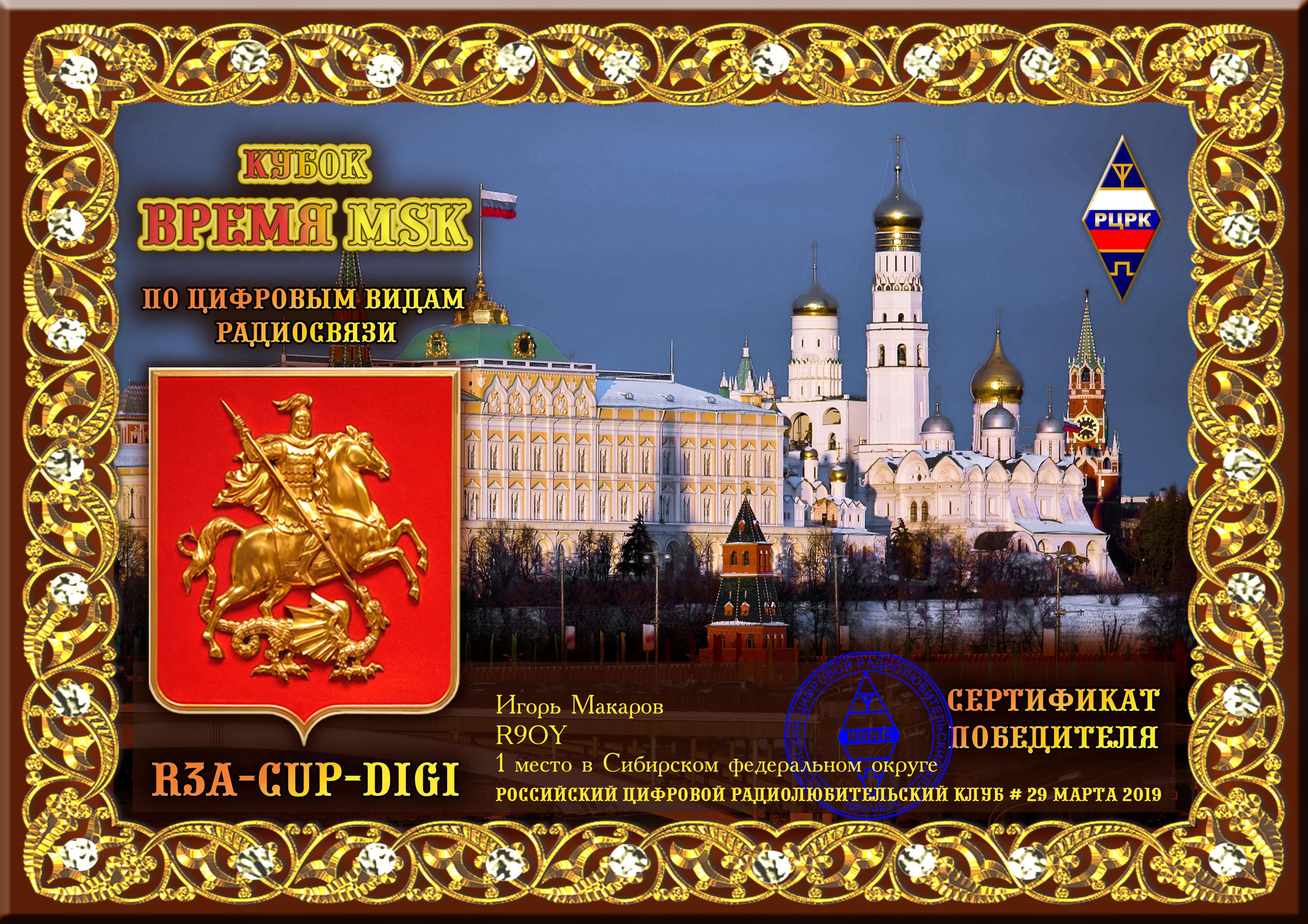 R9OY Winner Certificate RTTY Cup of "MSK TIME" 2019 |