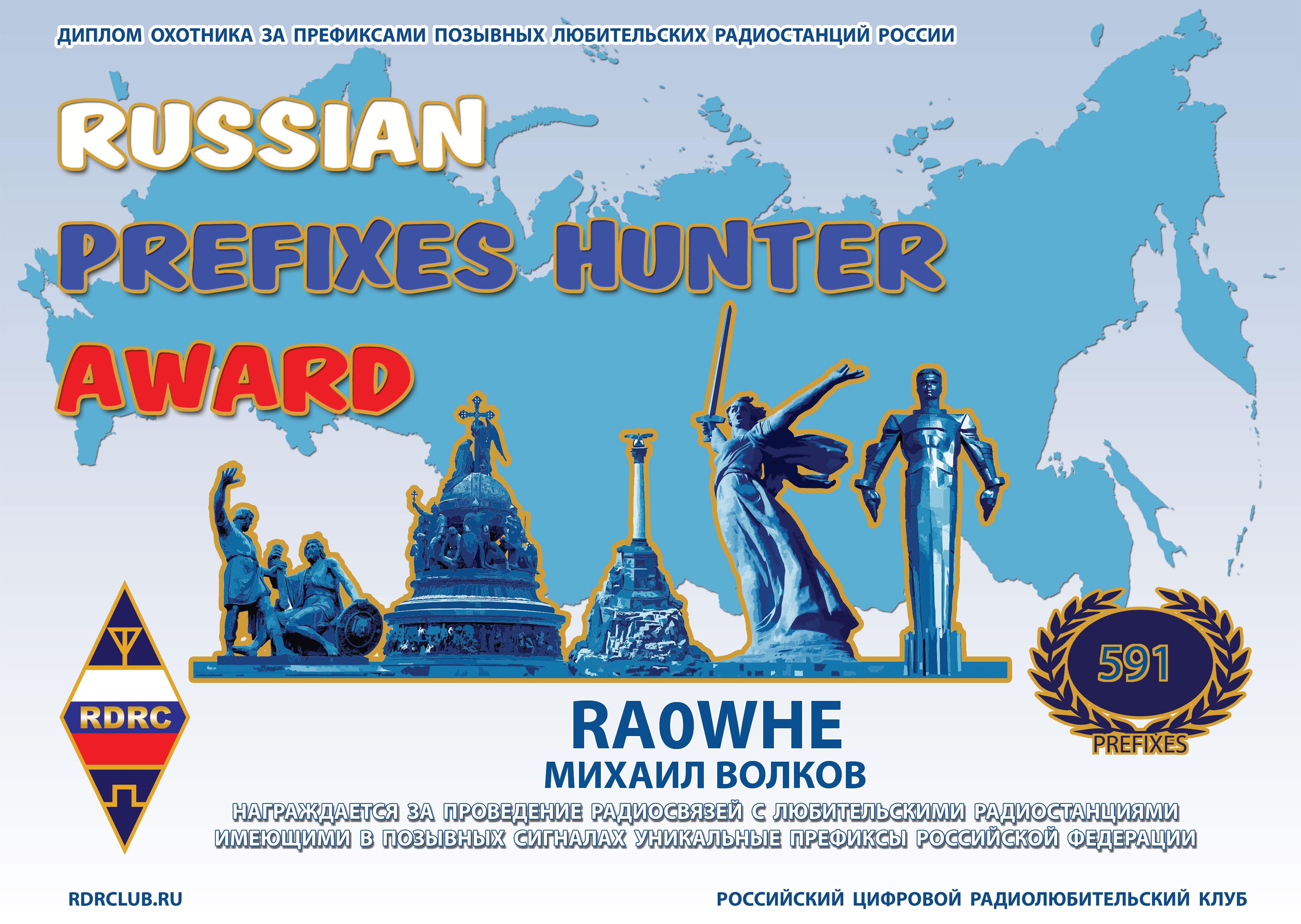 RA0WHE Certificate of participation Russian Prefix Hunter Award 2023 |