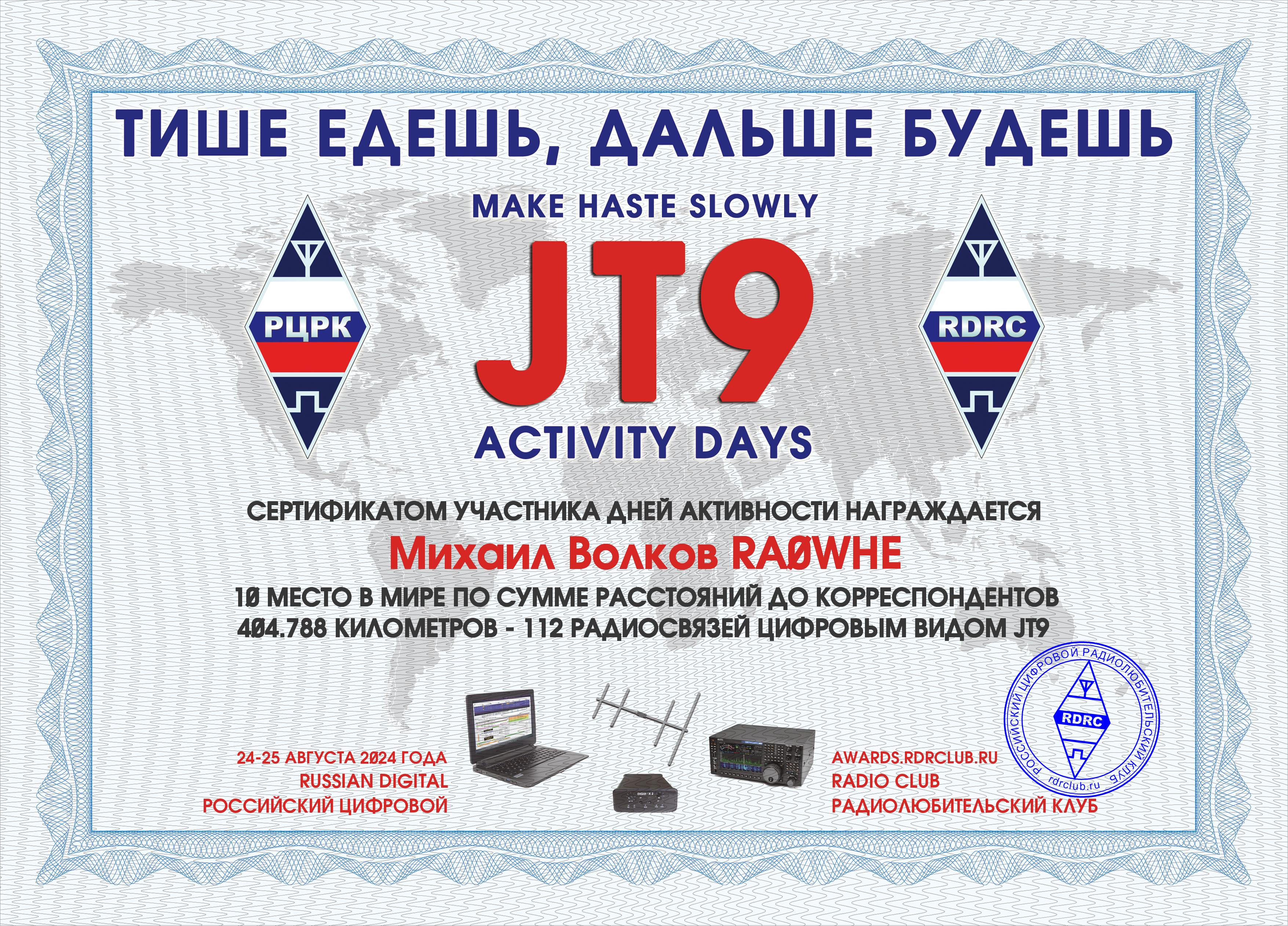 RA0WHE Certificate of participation JT9 MAKE HASTE SLOWLY 2024 |