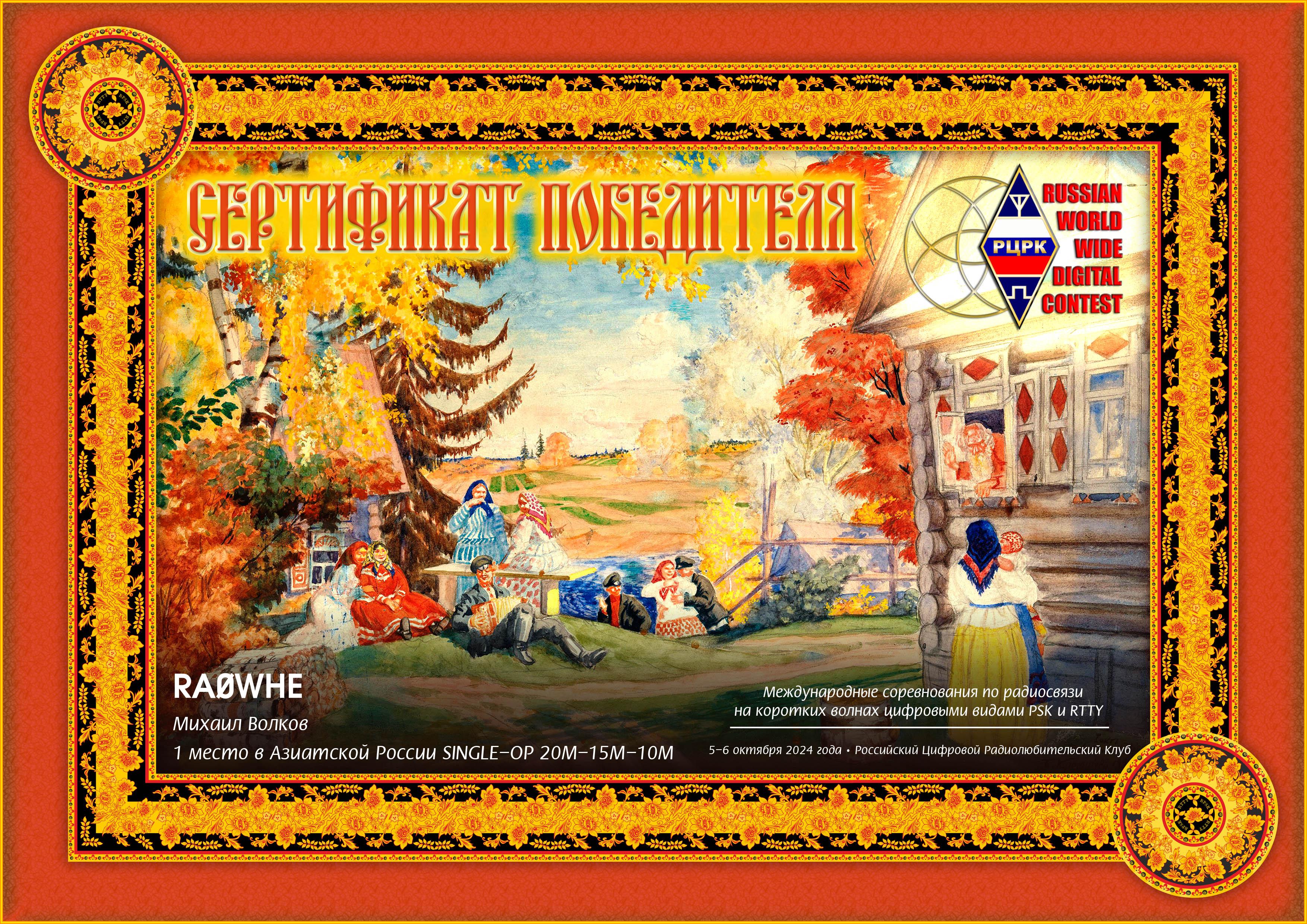 RA0WHE Certificate of participation RUSSIAN WW MULTIMODE CONTEST 2024 |