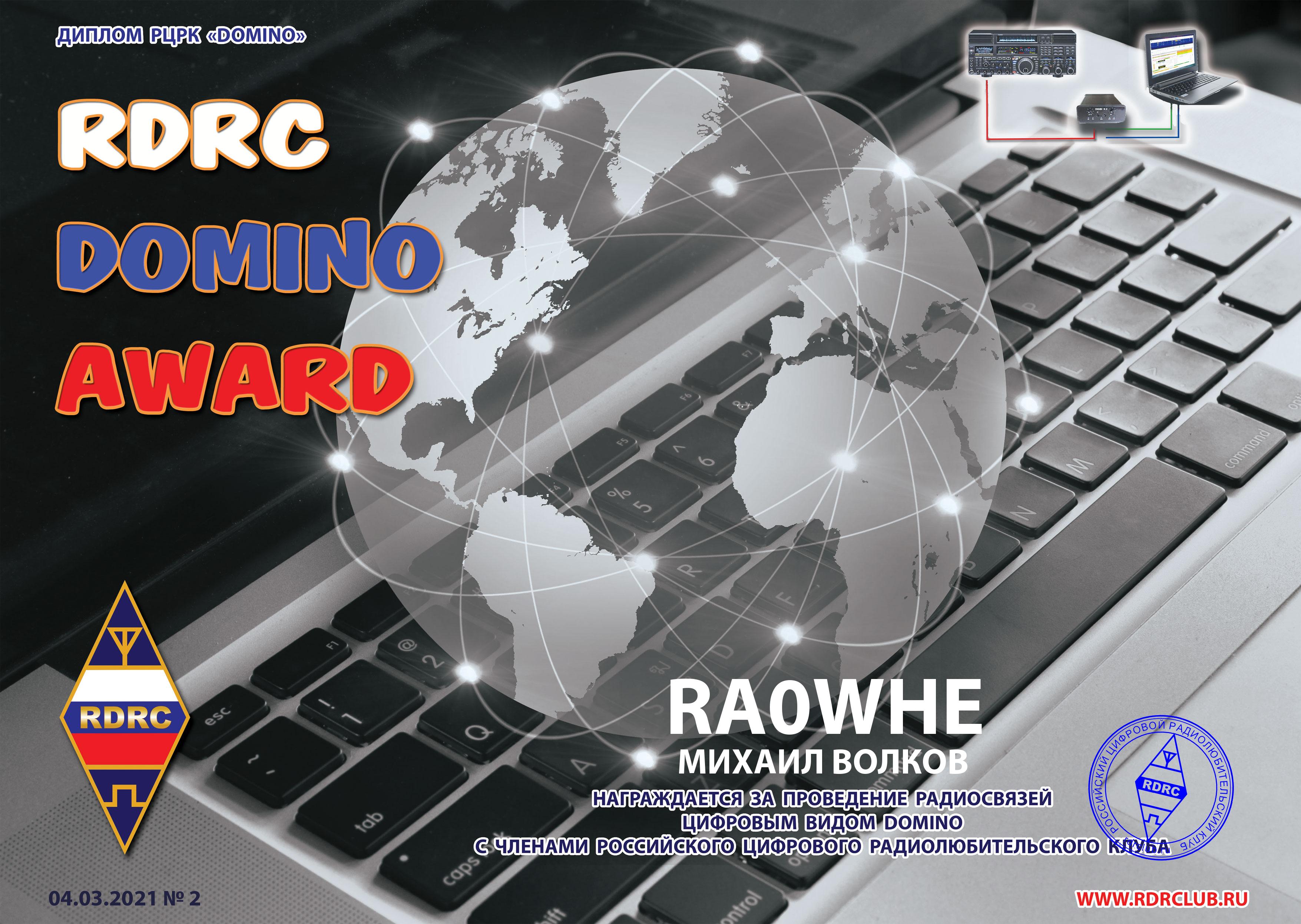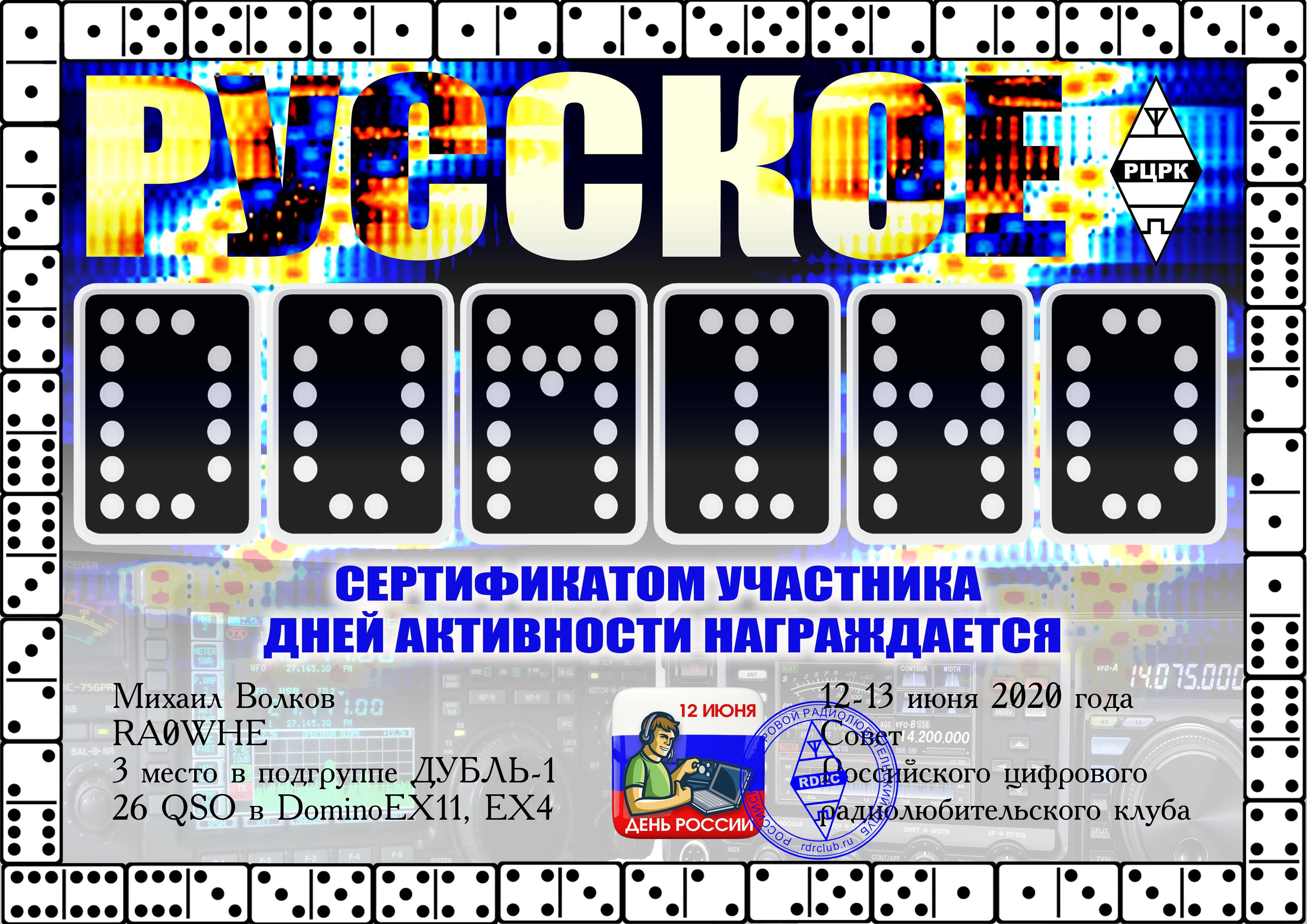 RA0WHE Certificate of participation RUSSIAN DOMINO 2020 |