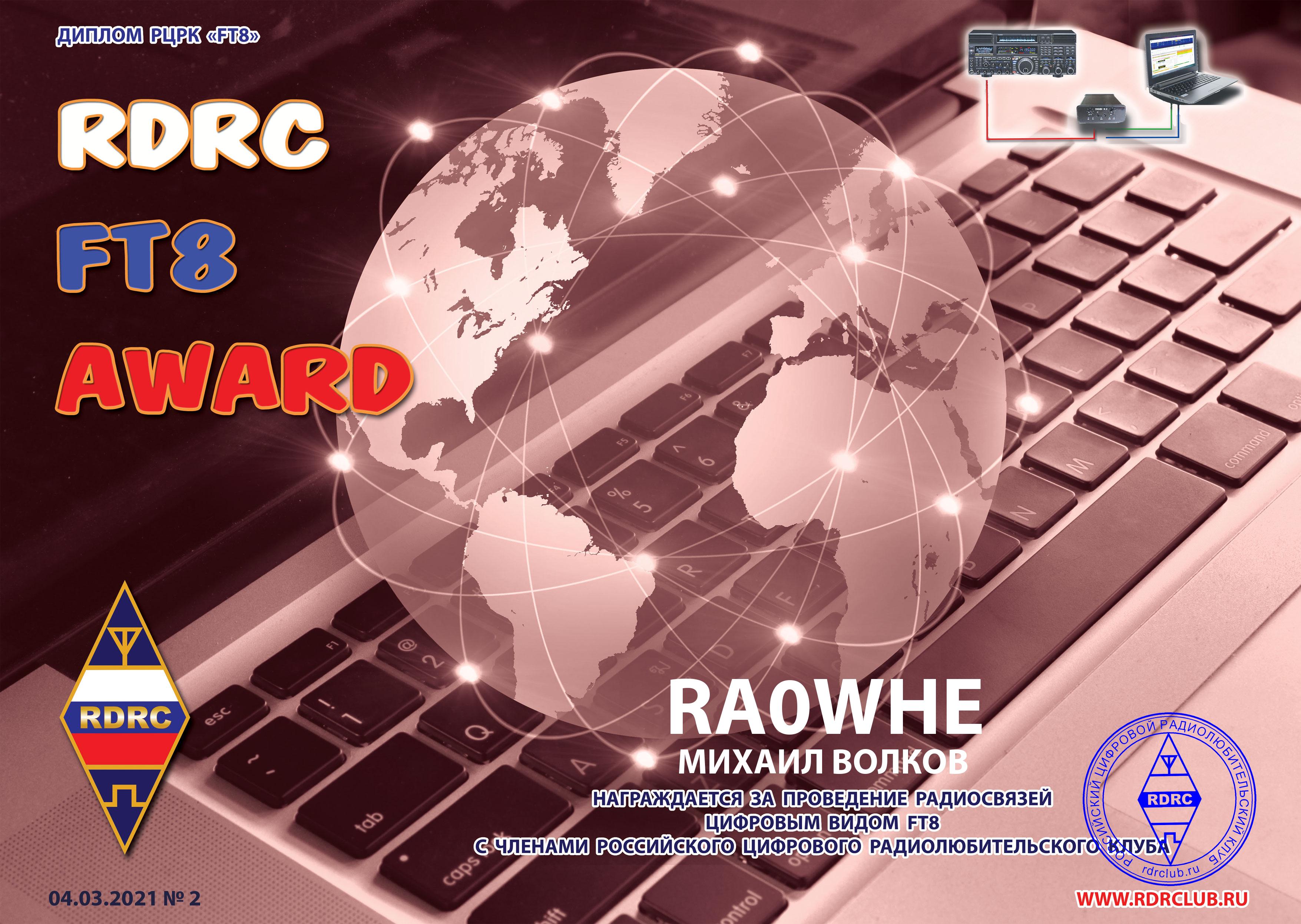 RA0WHE FT8 RDRC in MODE AWARDS 2021 |