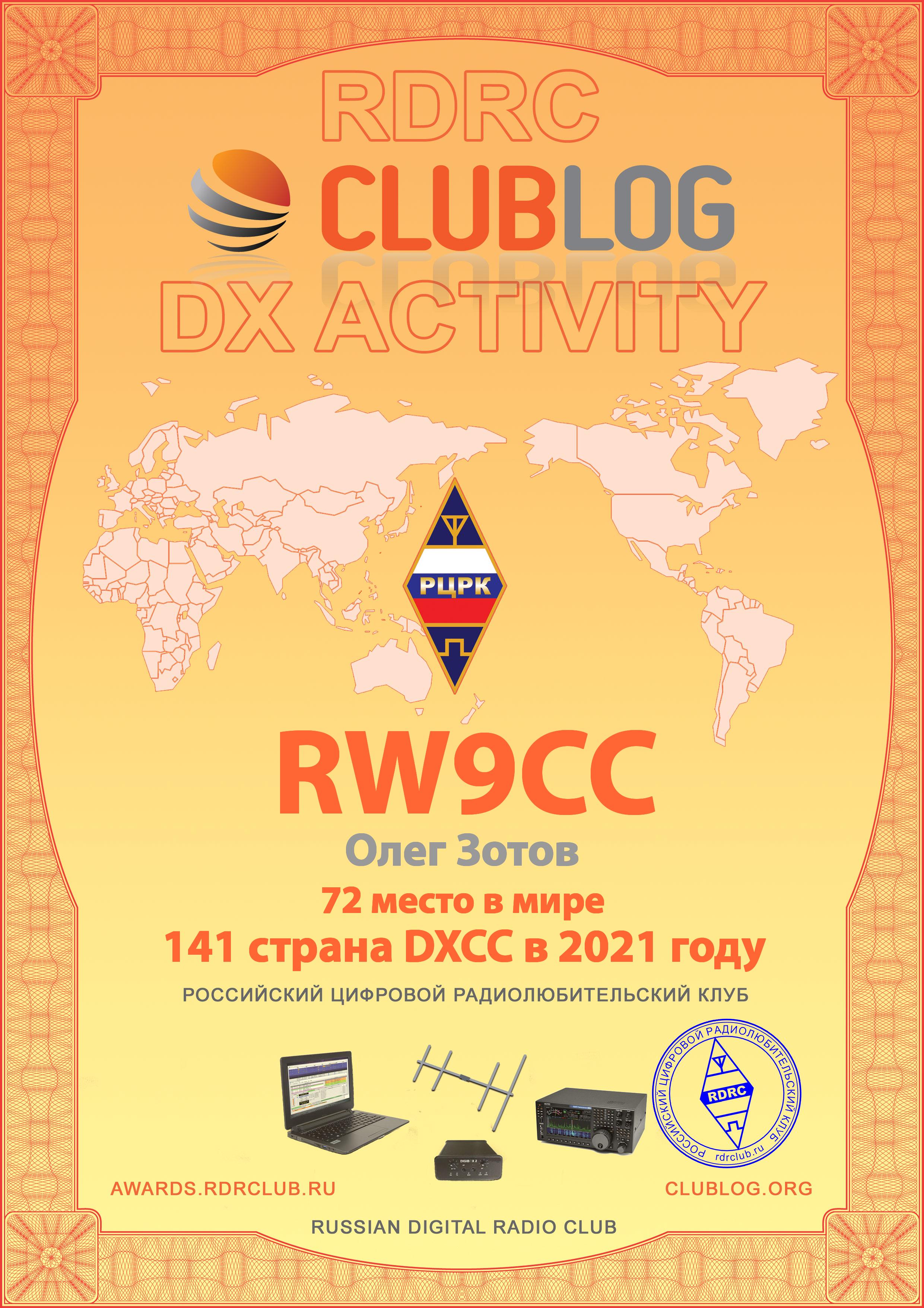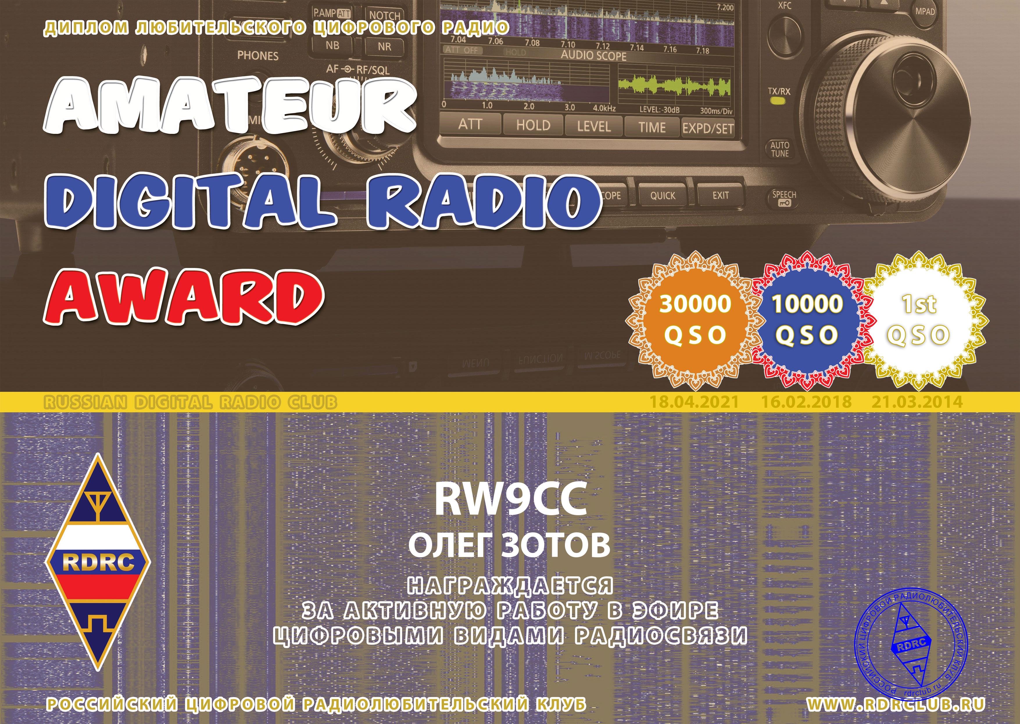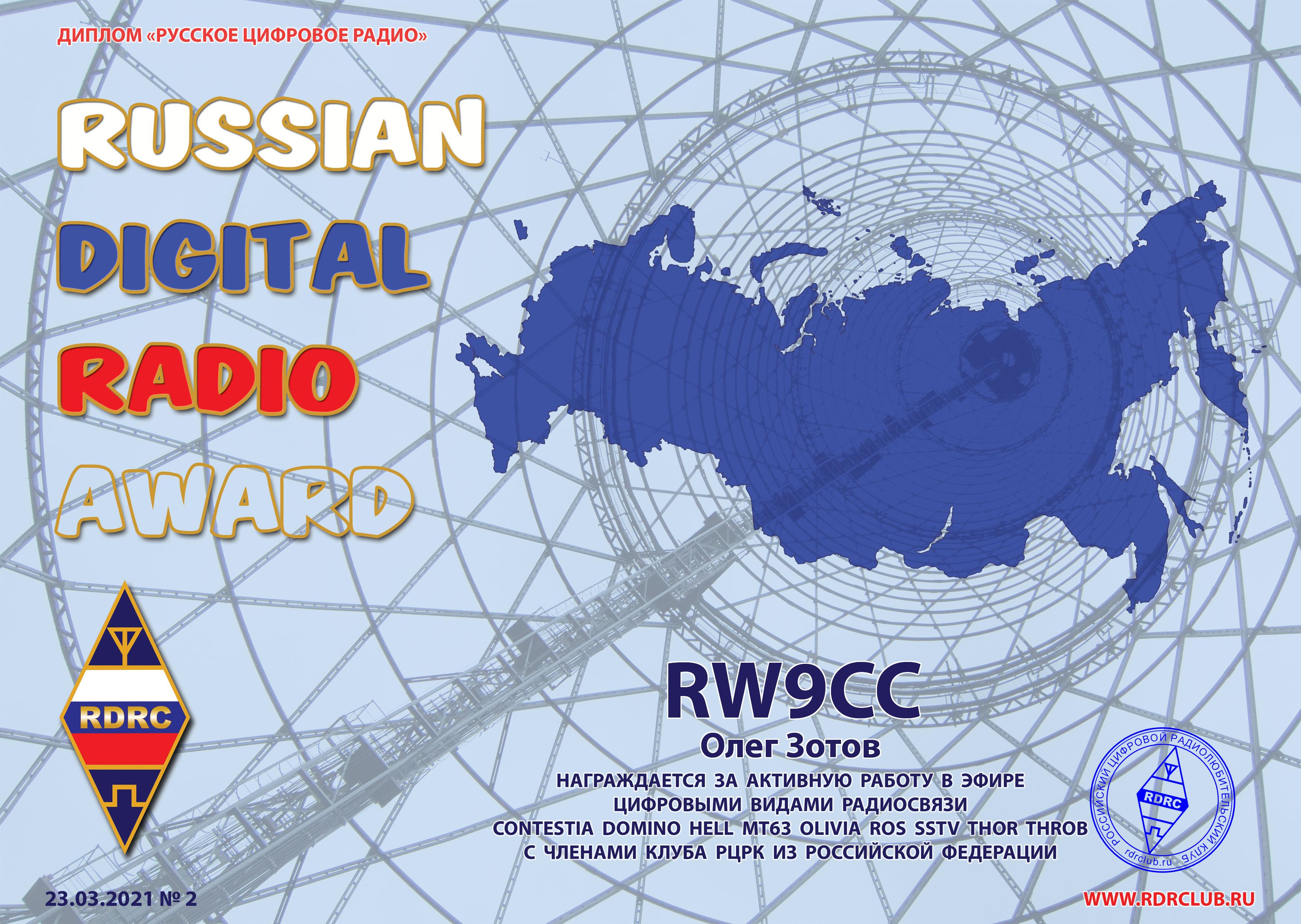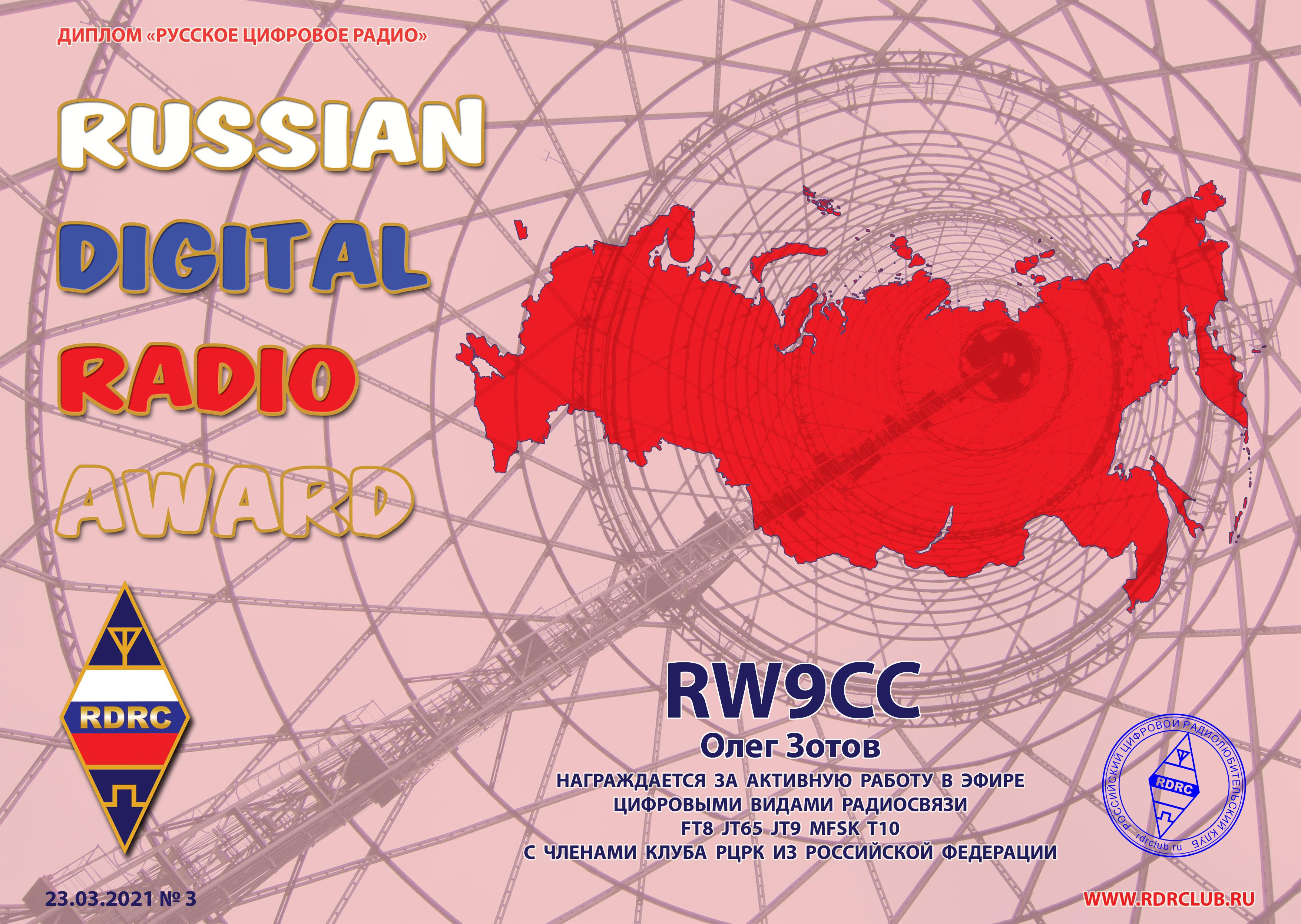 RW9CC Certificate of participation Amateur Digital Radio Award 2021 |