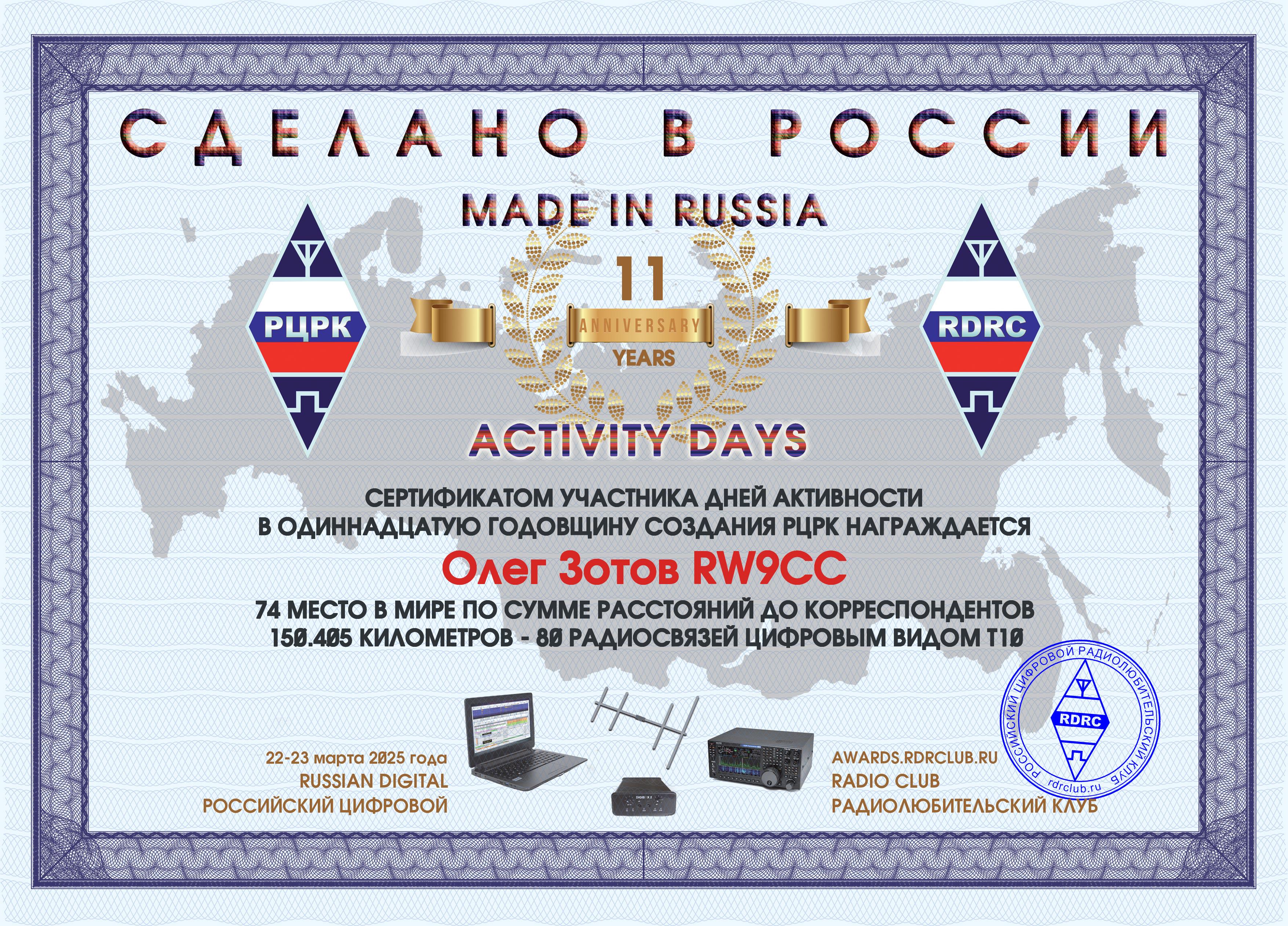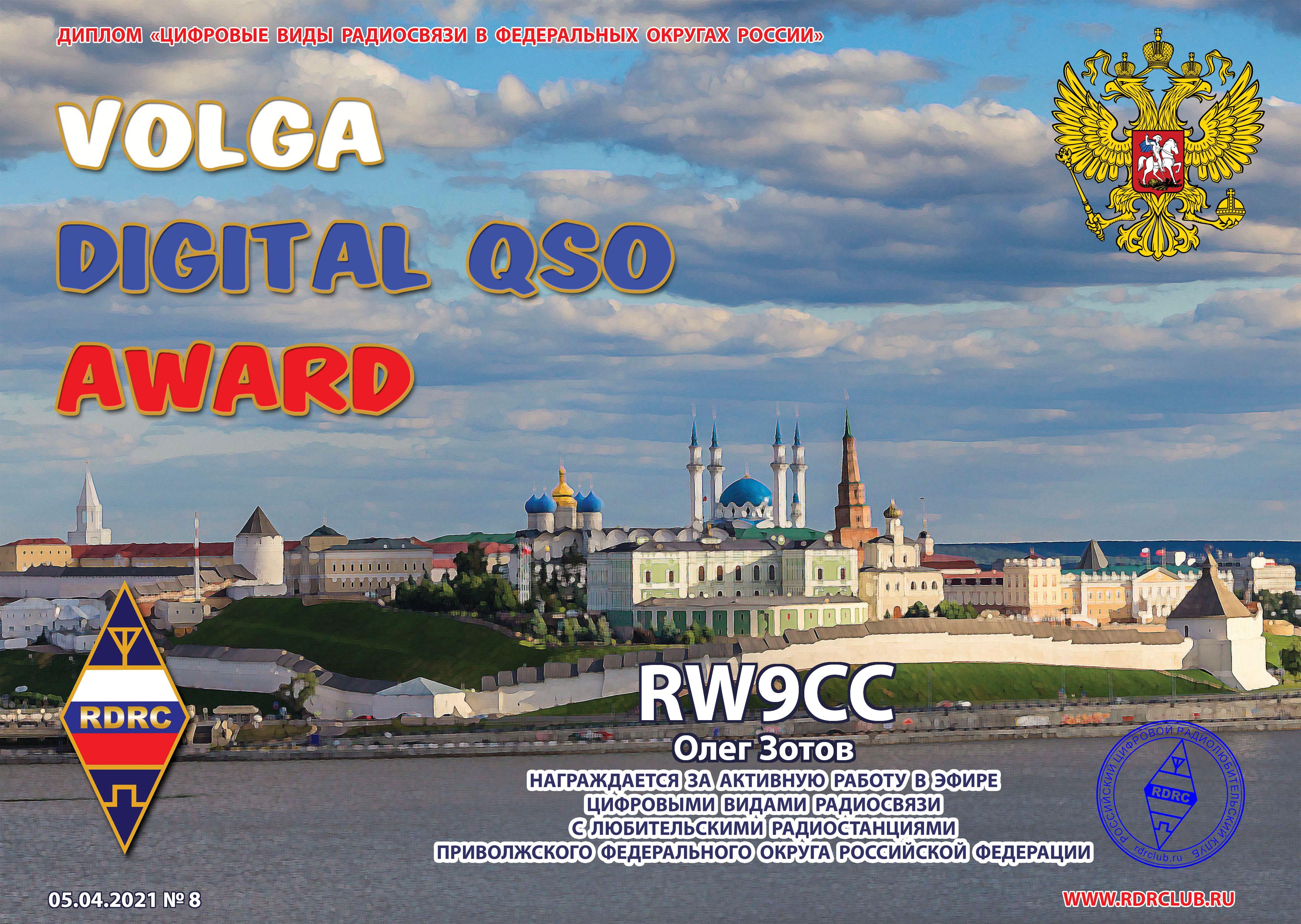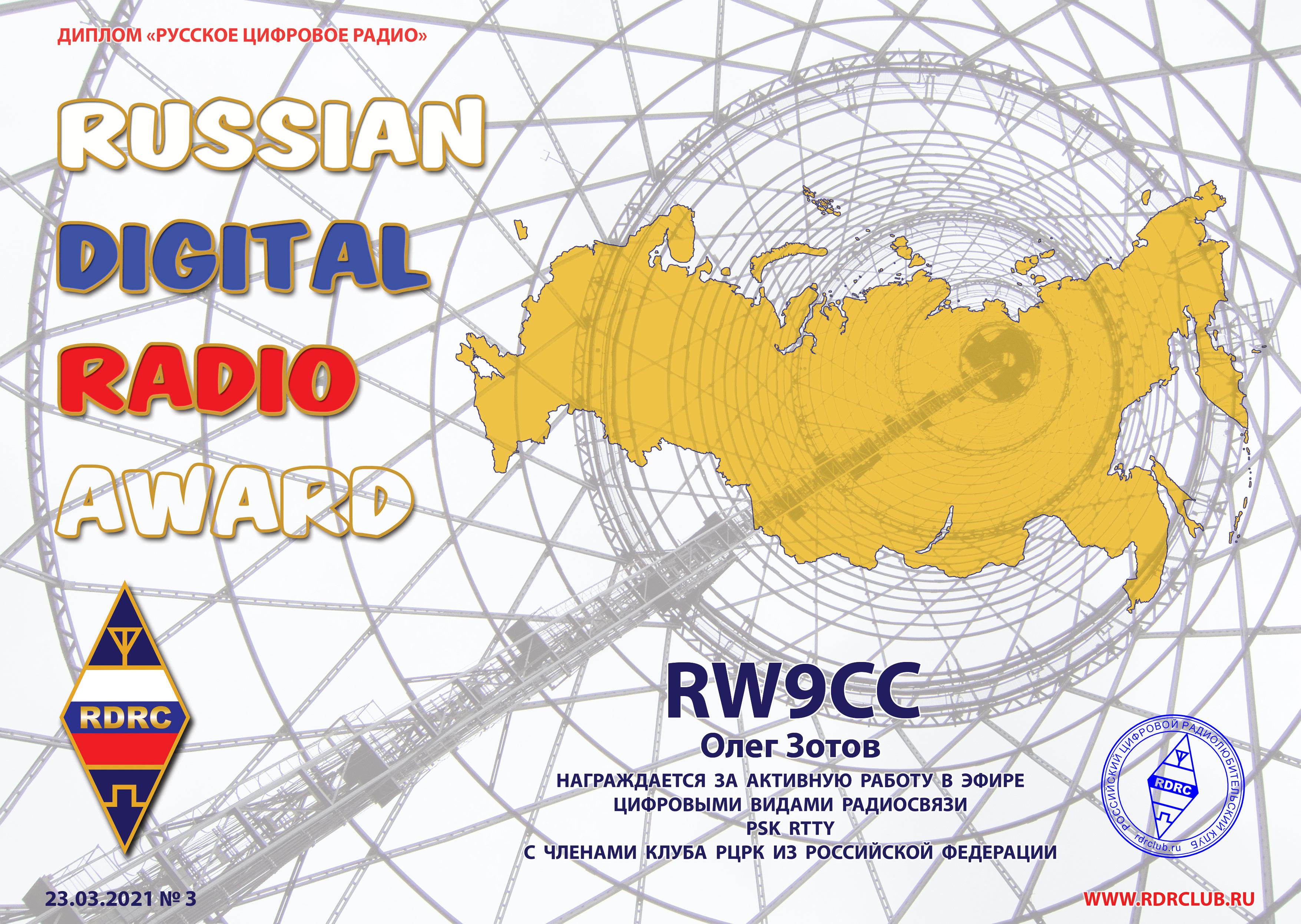 RW9CC Certificate of participation Amateur Digital Radio Award 2021 |