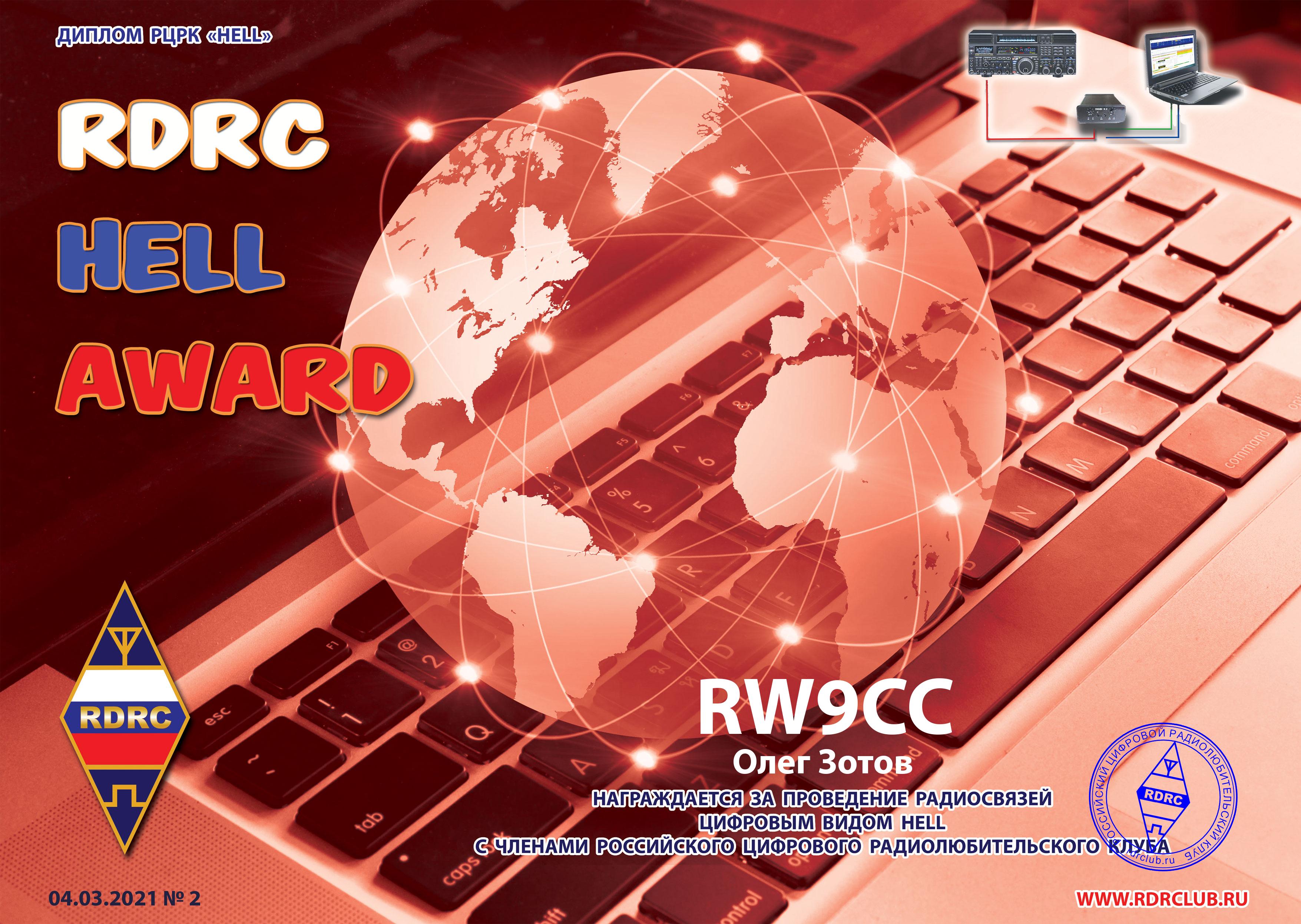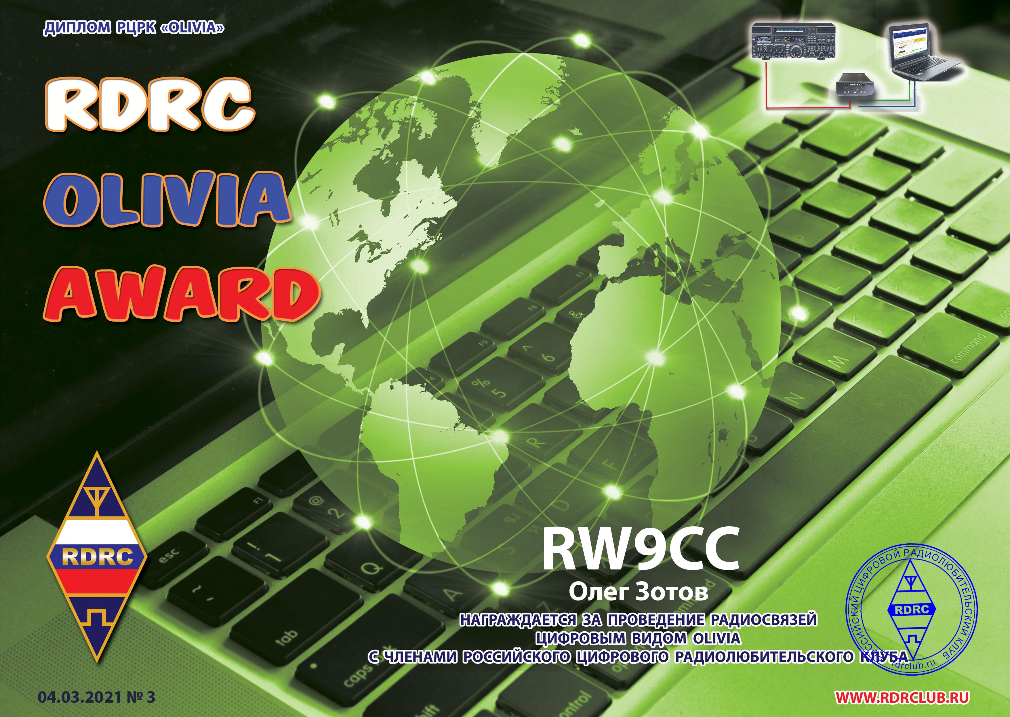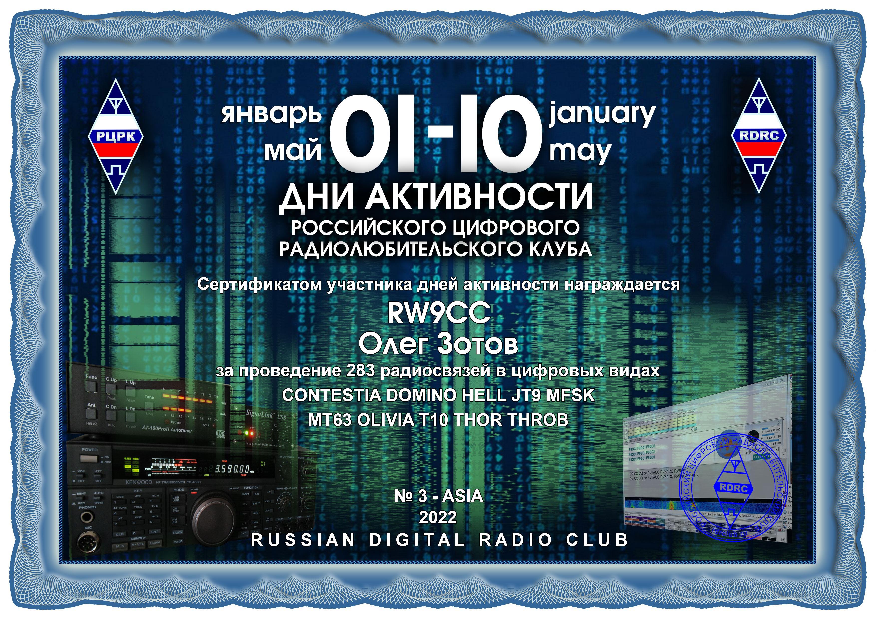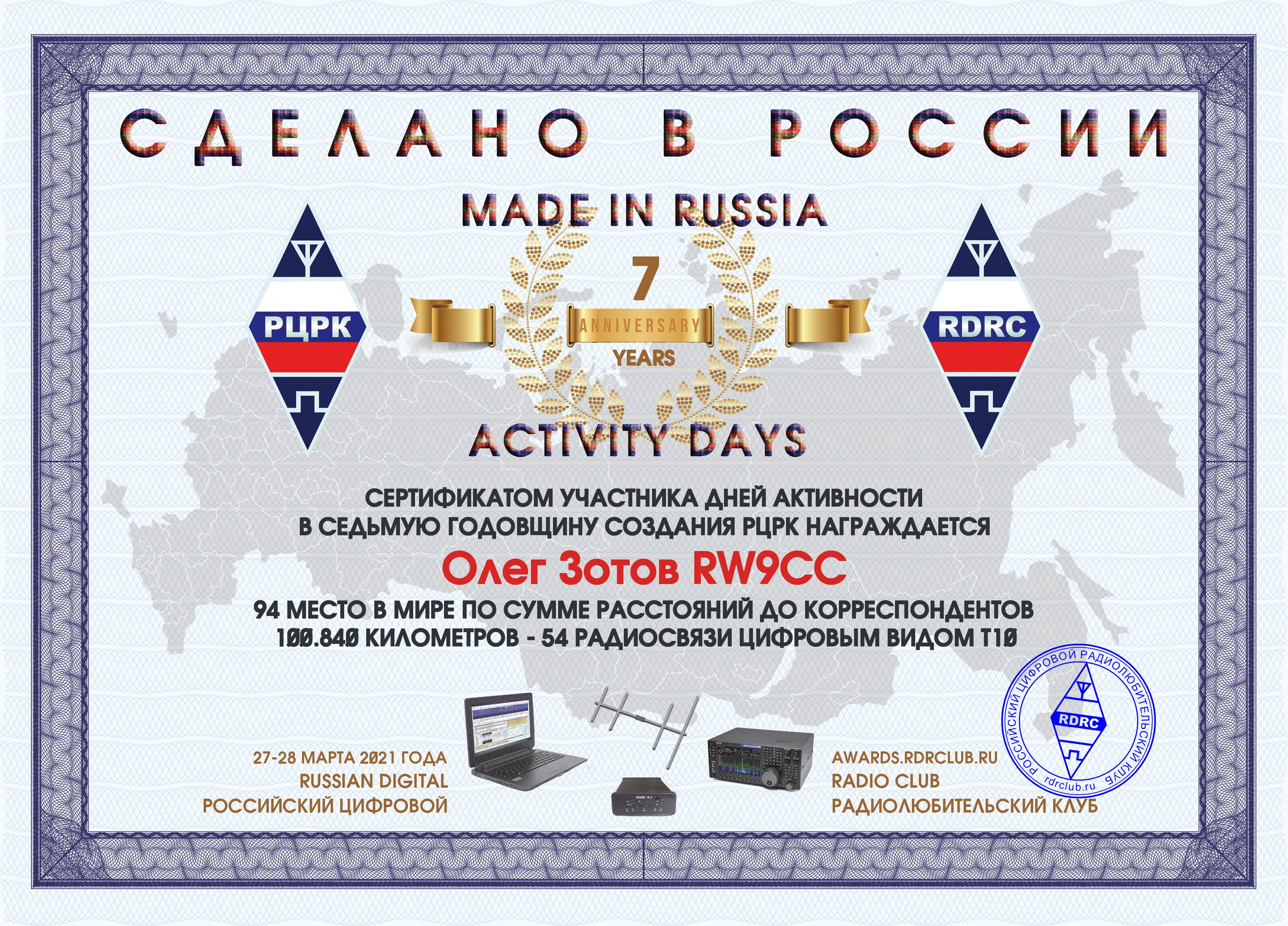 RW9CC Certificate of participation Amateur Digital Radio Award 2021 |