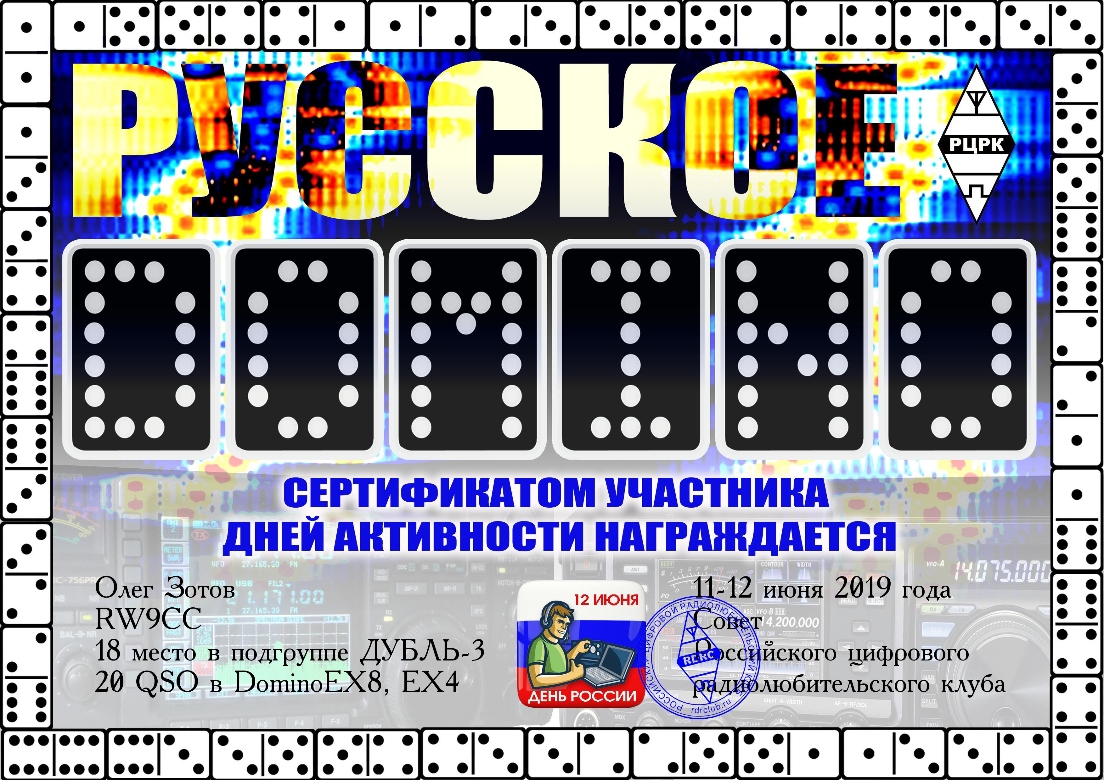 RW9CC Certificate of participation RUSSIAN DOMINO 2019 |