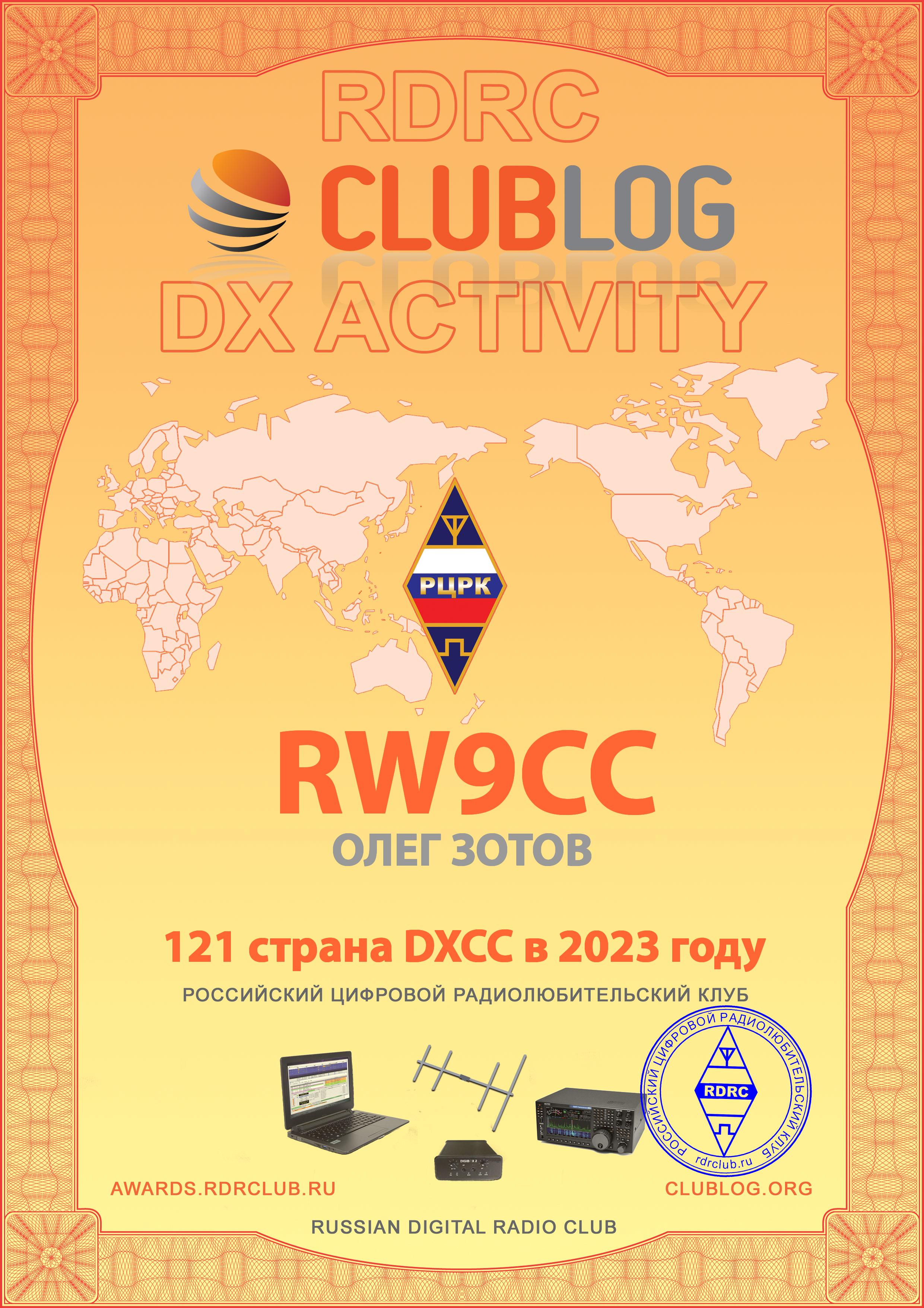 RW9CC Certificate of participation CLUBLOG DX ACTIVITY 2023 |