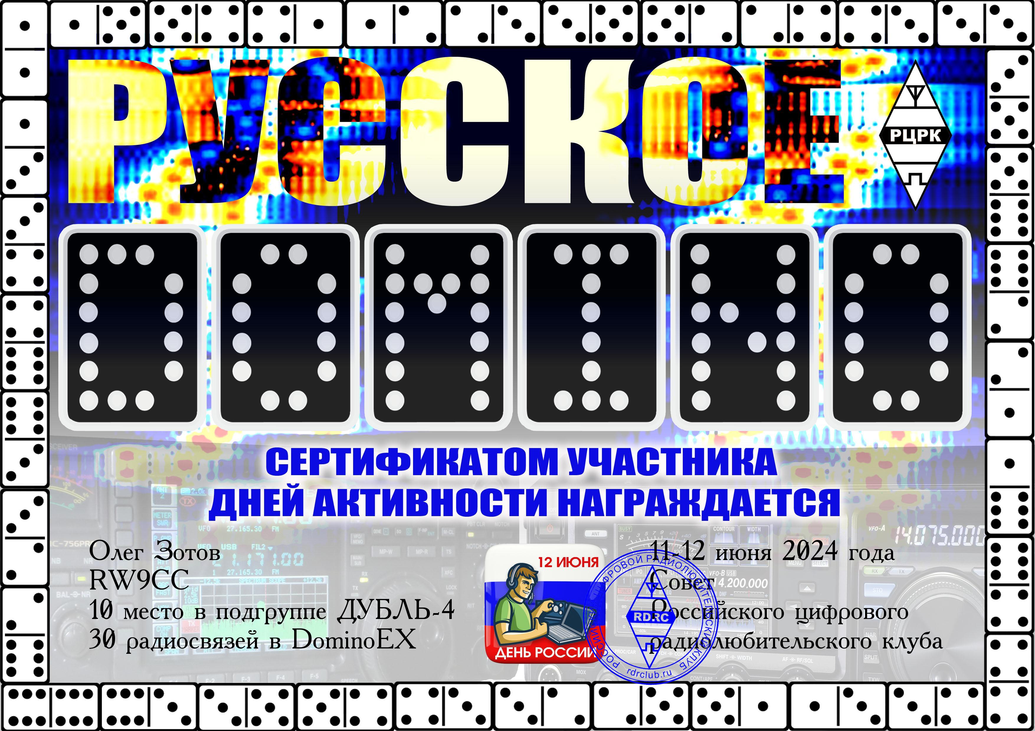RW9CC Certificate of participation RUSSIAN DOMINO 2024 |