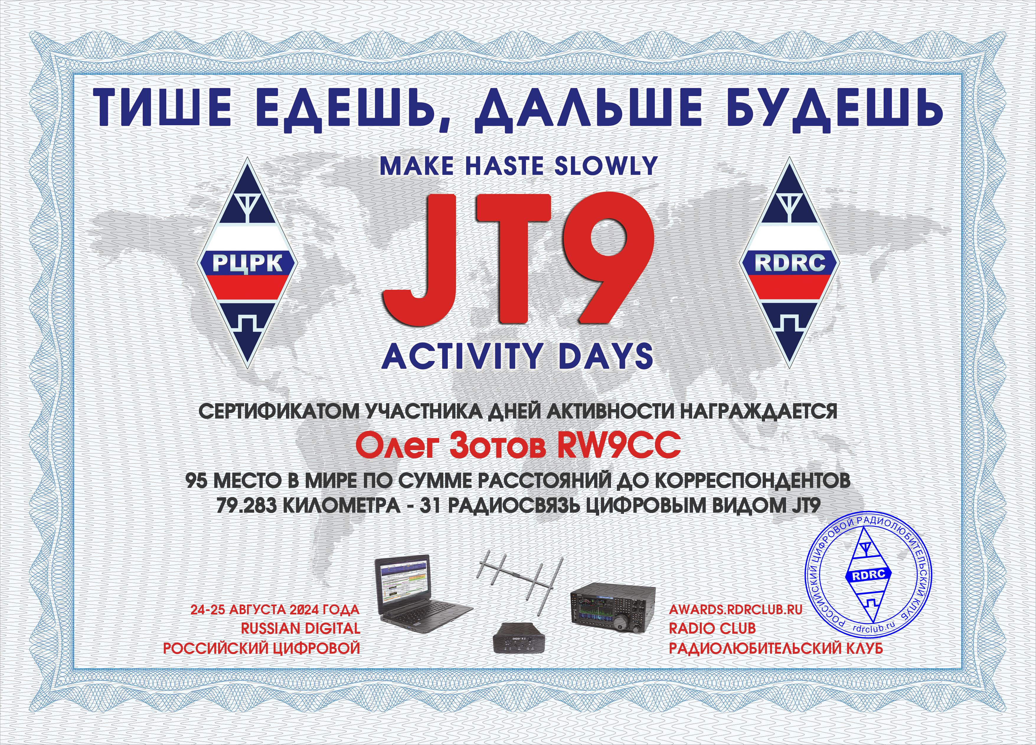 RW9CC Certificate of participation JT9 MAKE HASTE SLOWLY 2024 |
