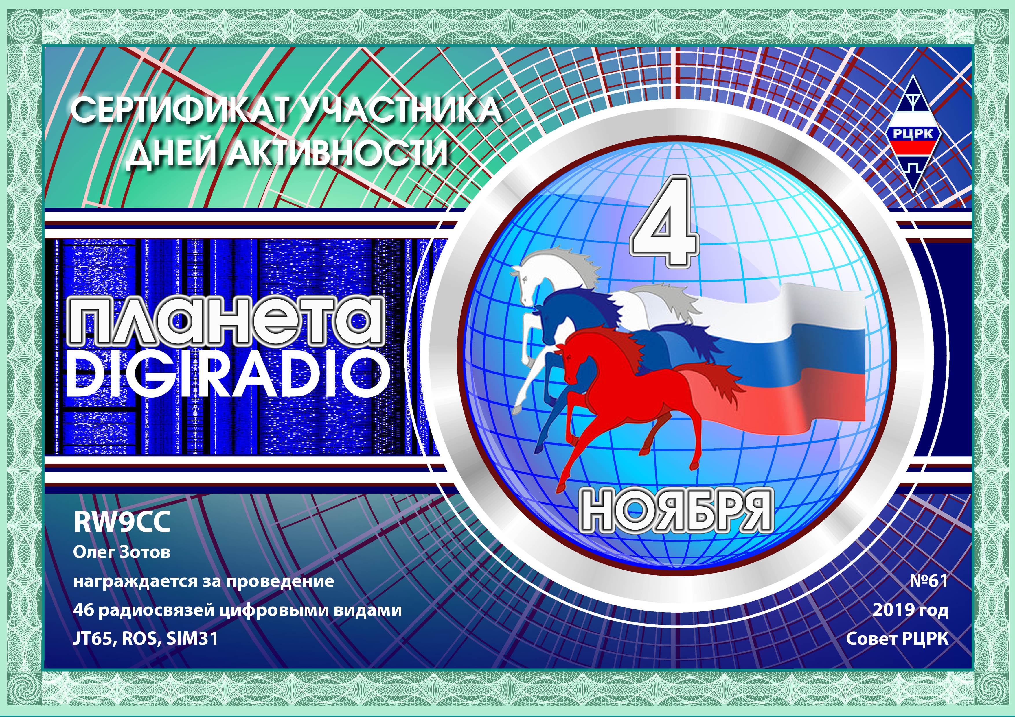 RW9CC Certificate of participation PLANET DIGIRADIO 2019 |