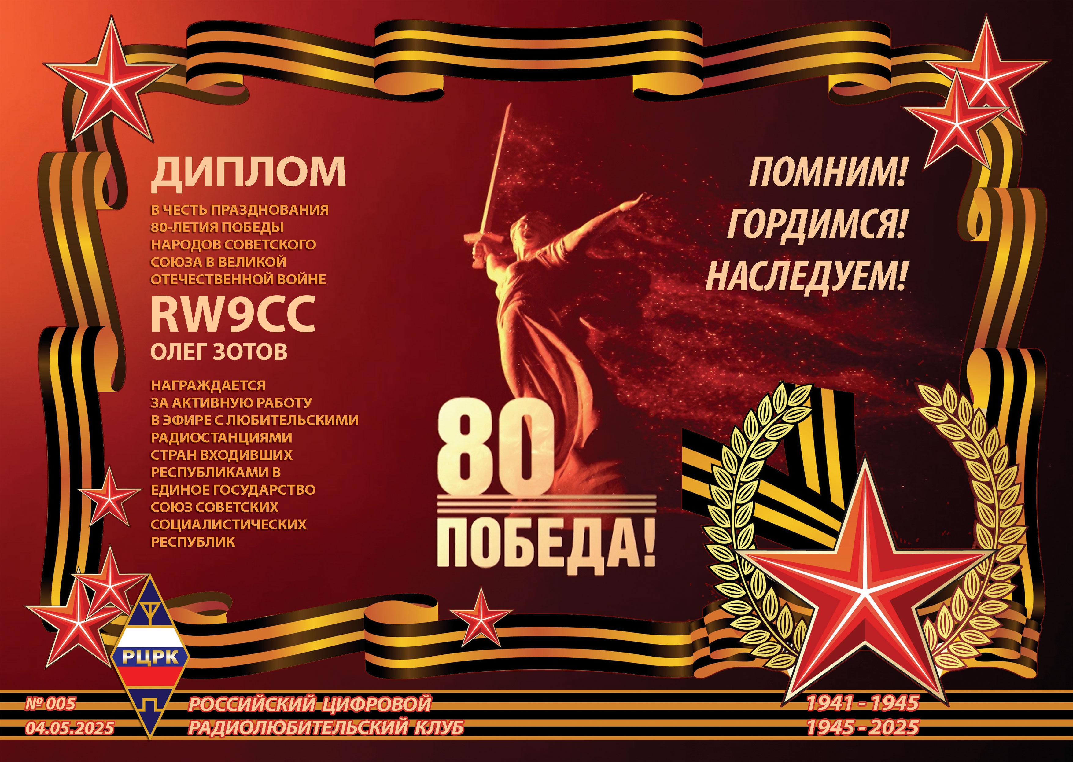 RW9CC Certificate of participation ПОМНИМ! ГОРДИМСЯ! НАСЛЕДУЕМ! 2025 |