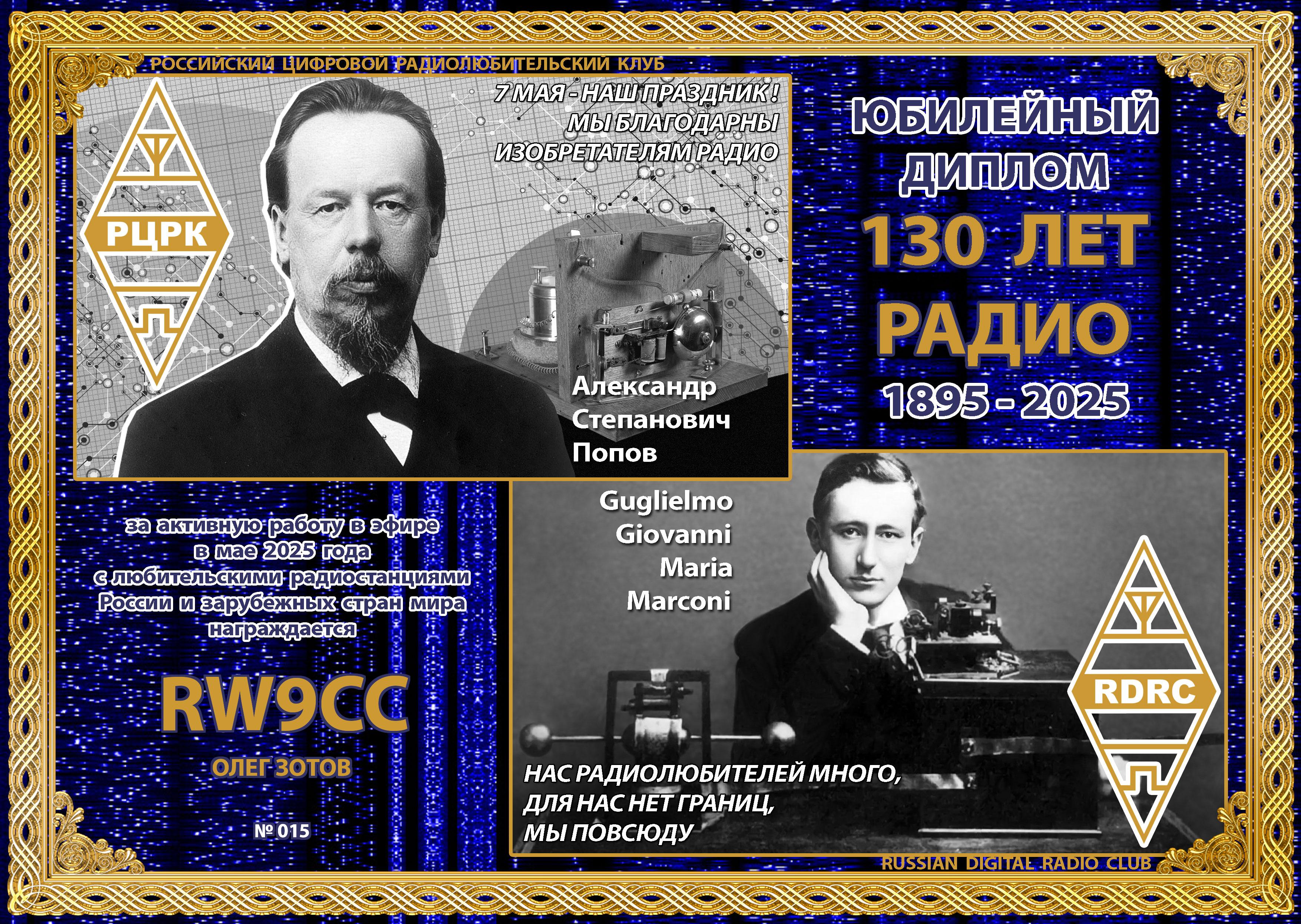 RW9CC Certificate of participation Юбилейный диплом «130 лет РАДИО» 2025 |