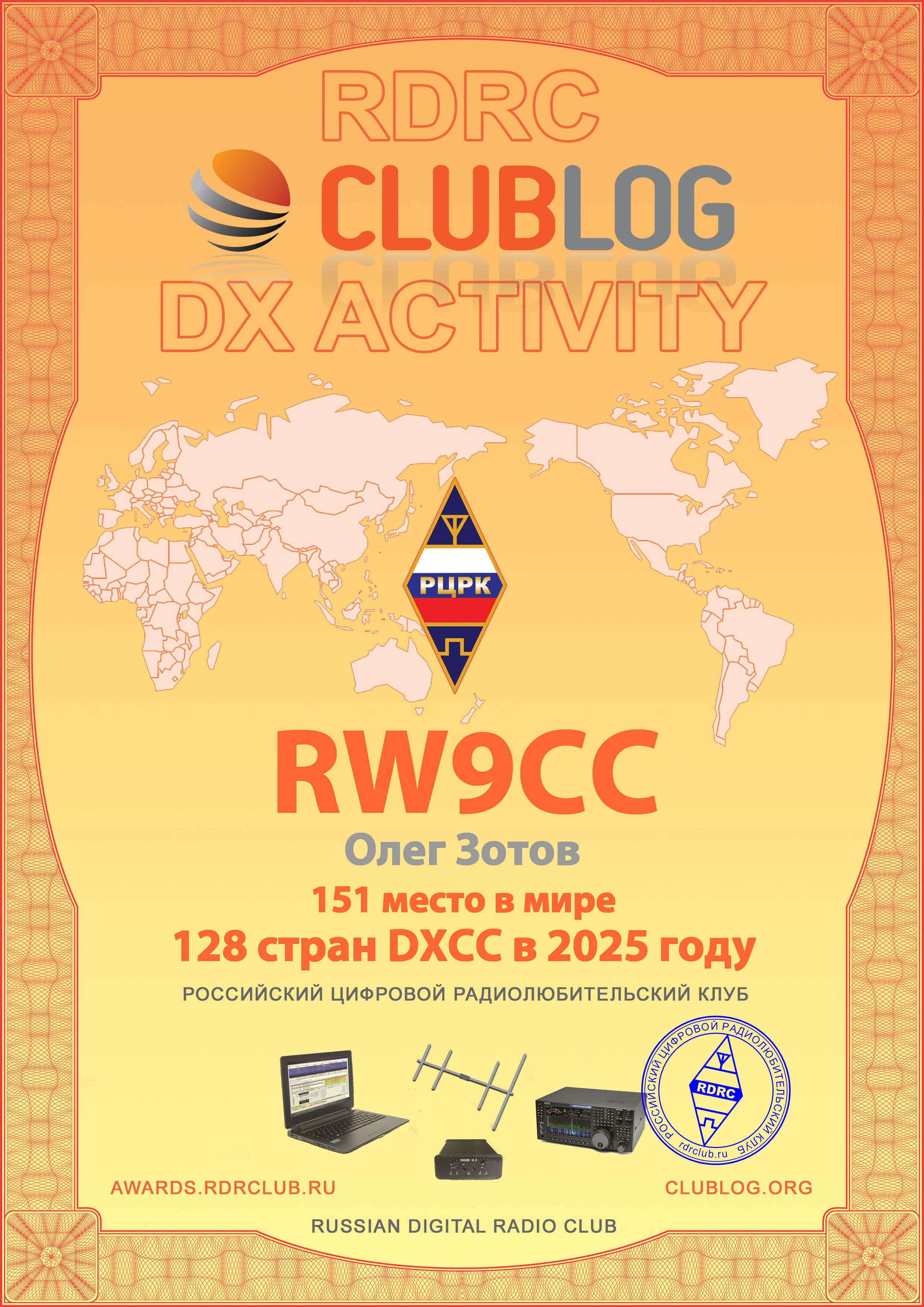 RW9CC Certificate of participation CLUBLOG DX ACTIVITY 2025 |