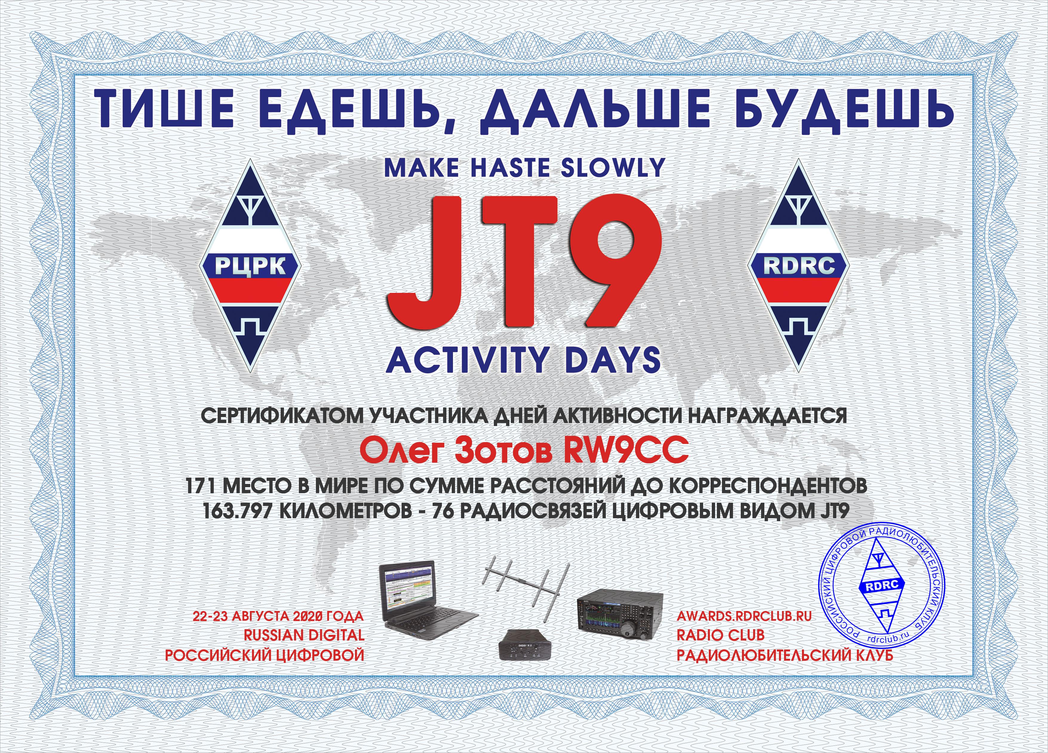 RW9CC Certificate of participation JT9 MAKE HASTE SLOWLY 2020 |