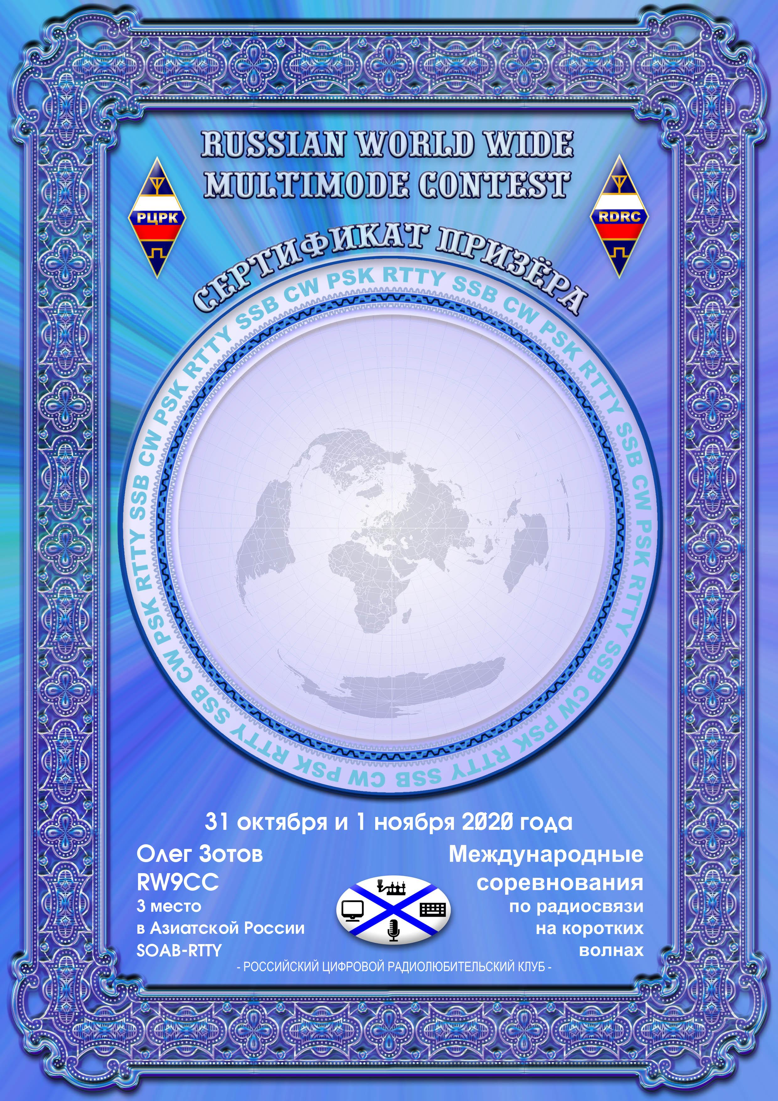 RW9CC Prizewinner Certificate RUSSIAN WW MULTIMODE CONTEST 2020 |