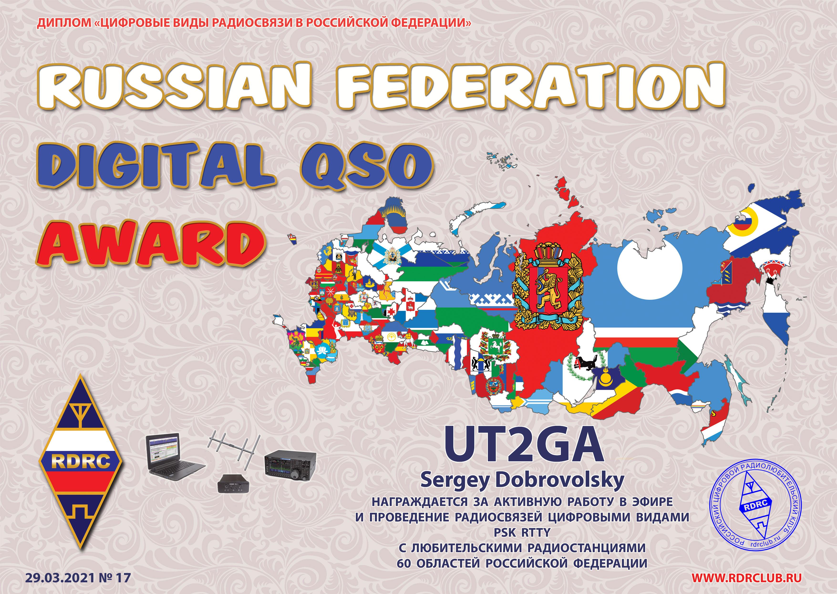 UT2GA RUSSIAN SOUTH RFDD AWARDS 2021 |