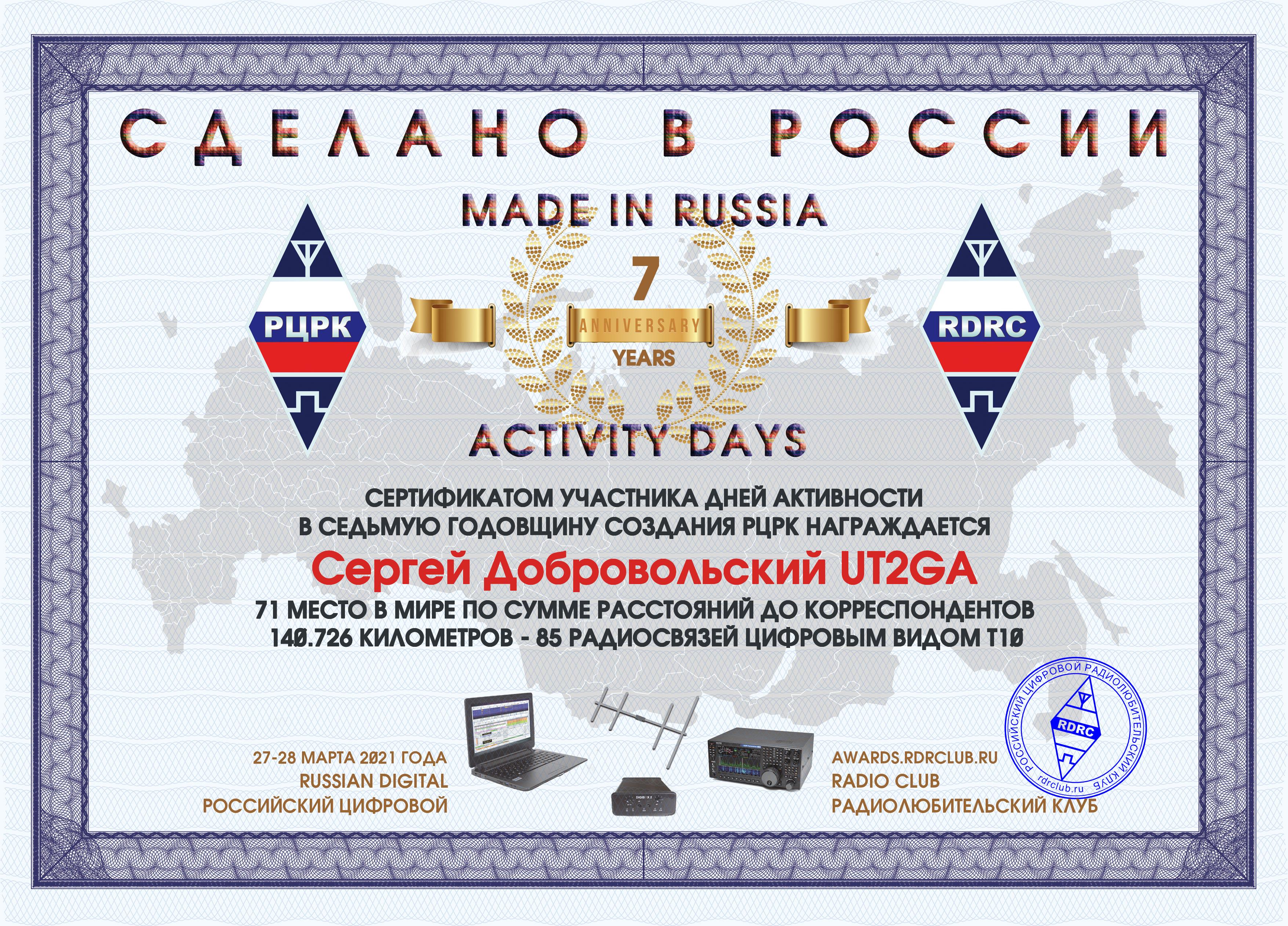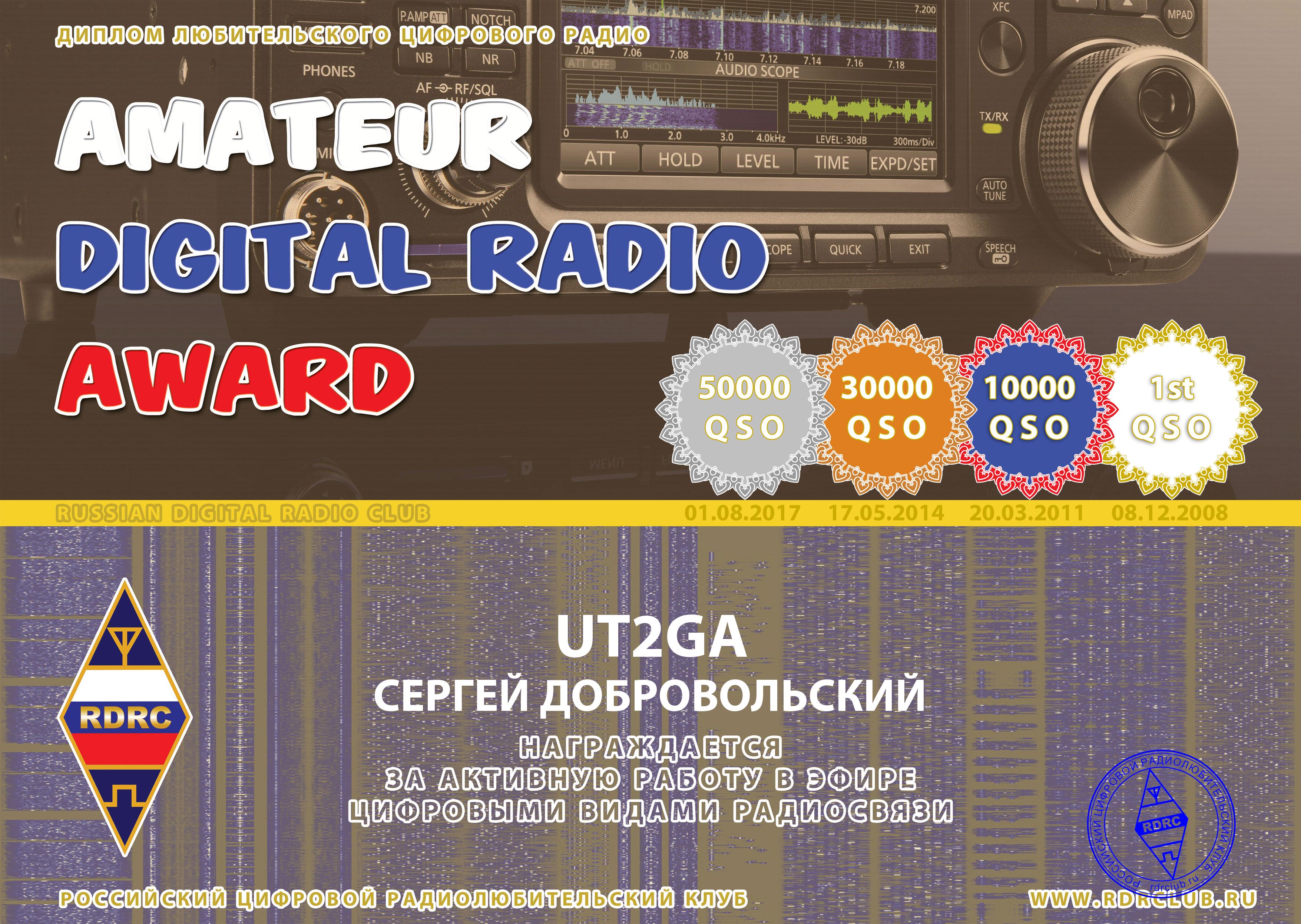 UT2GA Certificate of participation Amateur Digital Radio Award 2021 |