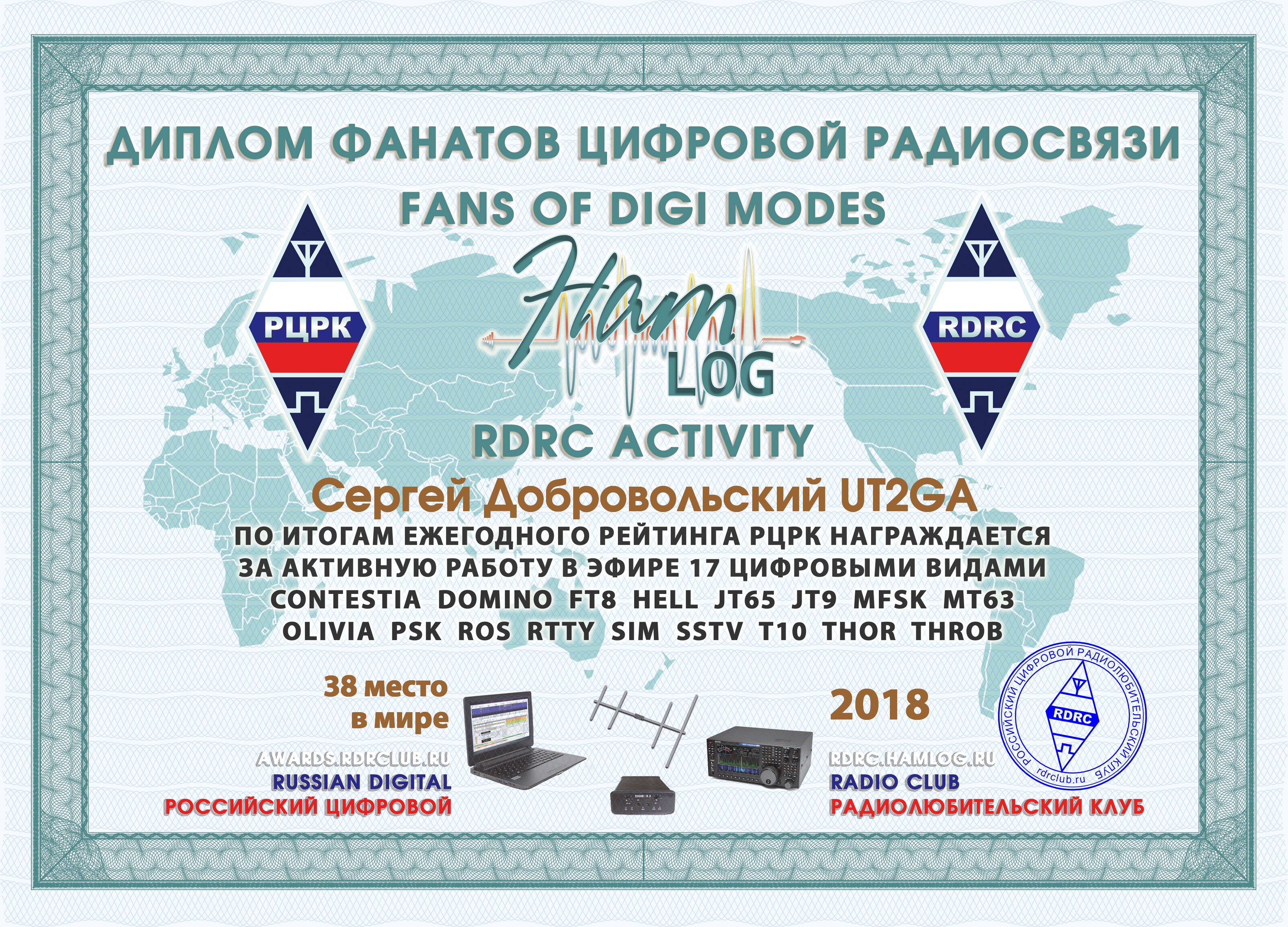 UT2GA Certificate of participation FANS OF DIGI MODES 2018 |