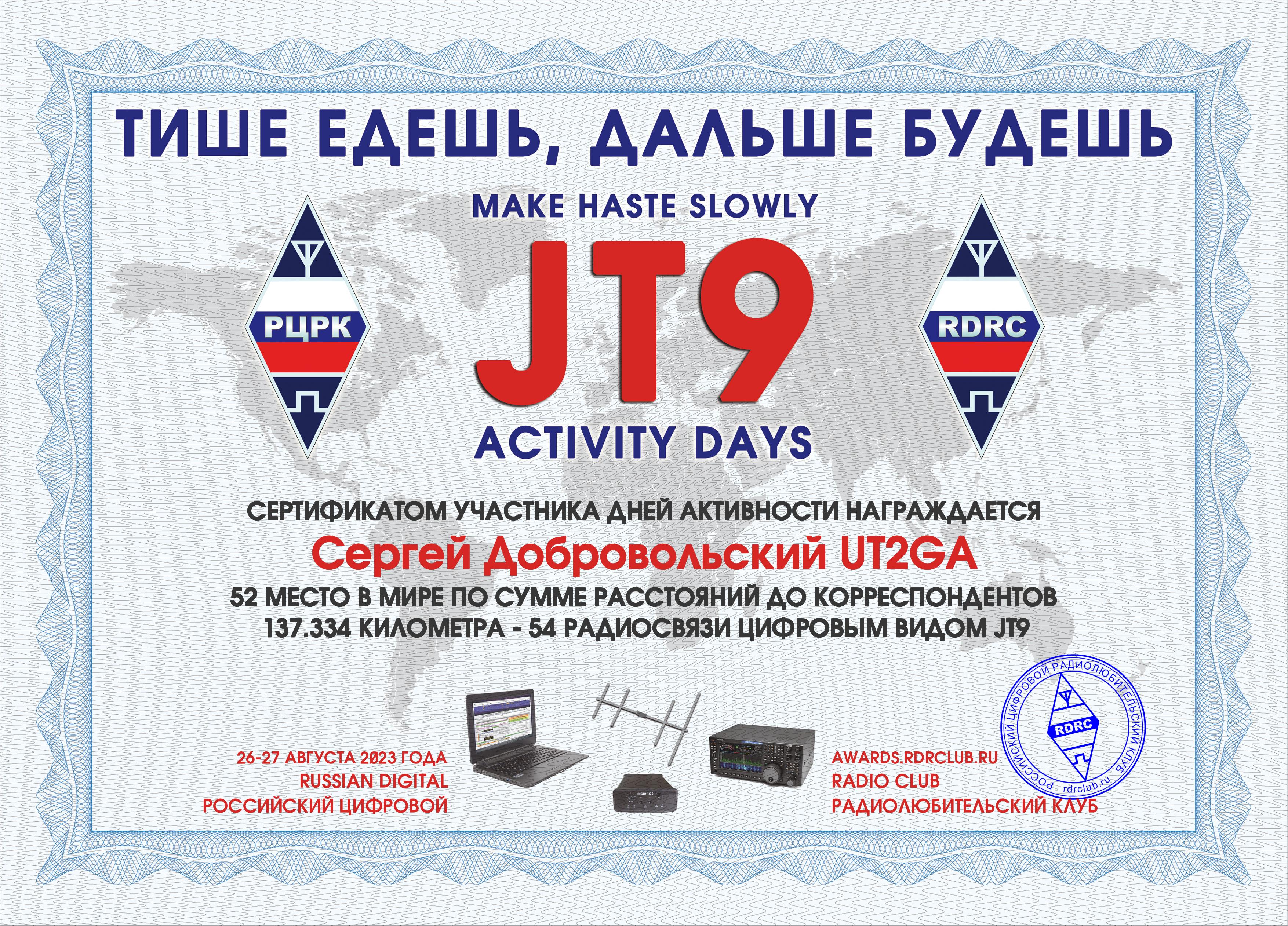UT2GA Certificate of participation JT9 MAKE HASTE SLOWLY 2023 |
