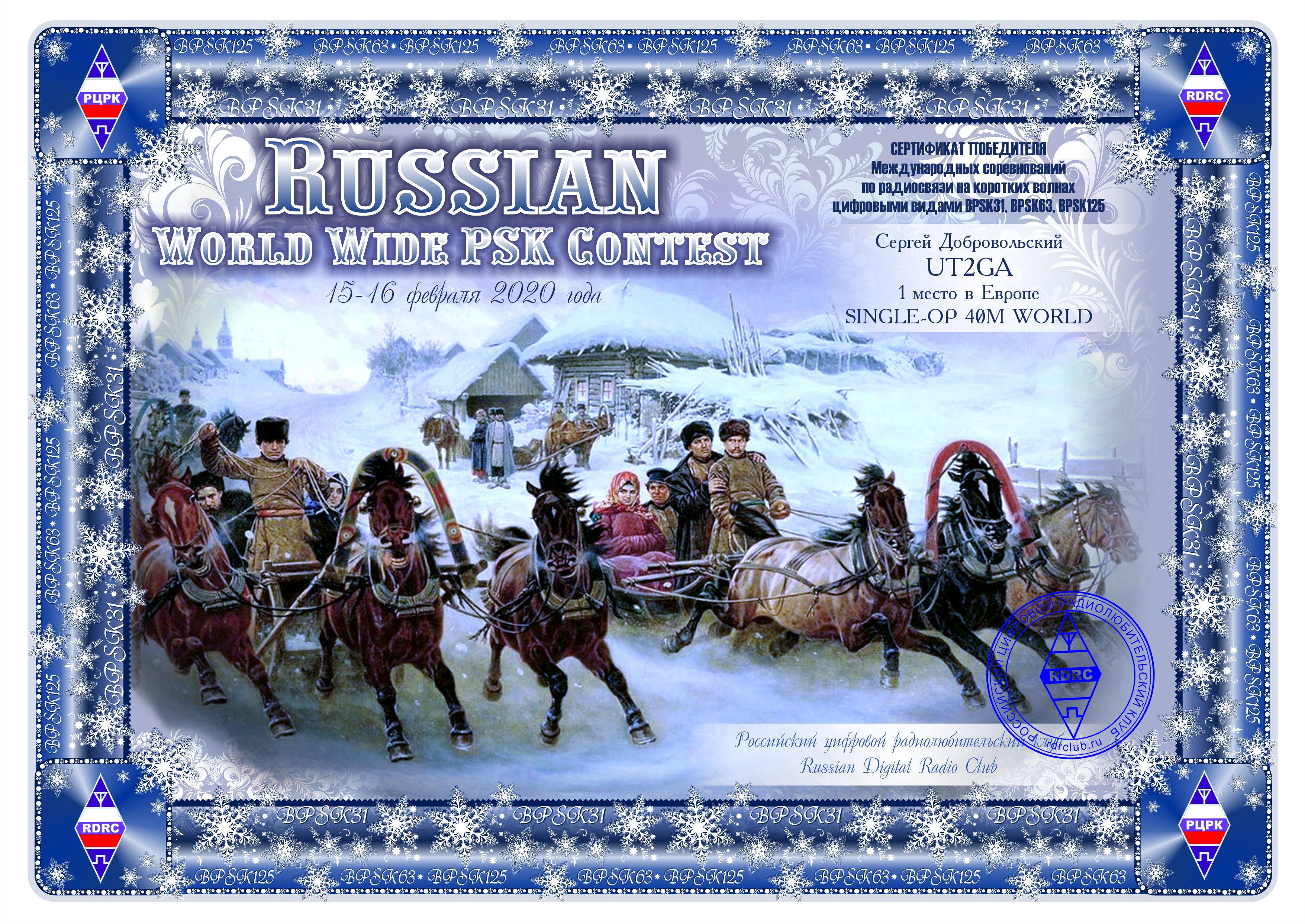 UT2GA Winner Certificate RUSSIAN WW PSK CONTEST 2020 |