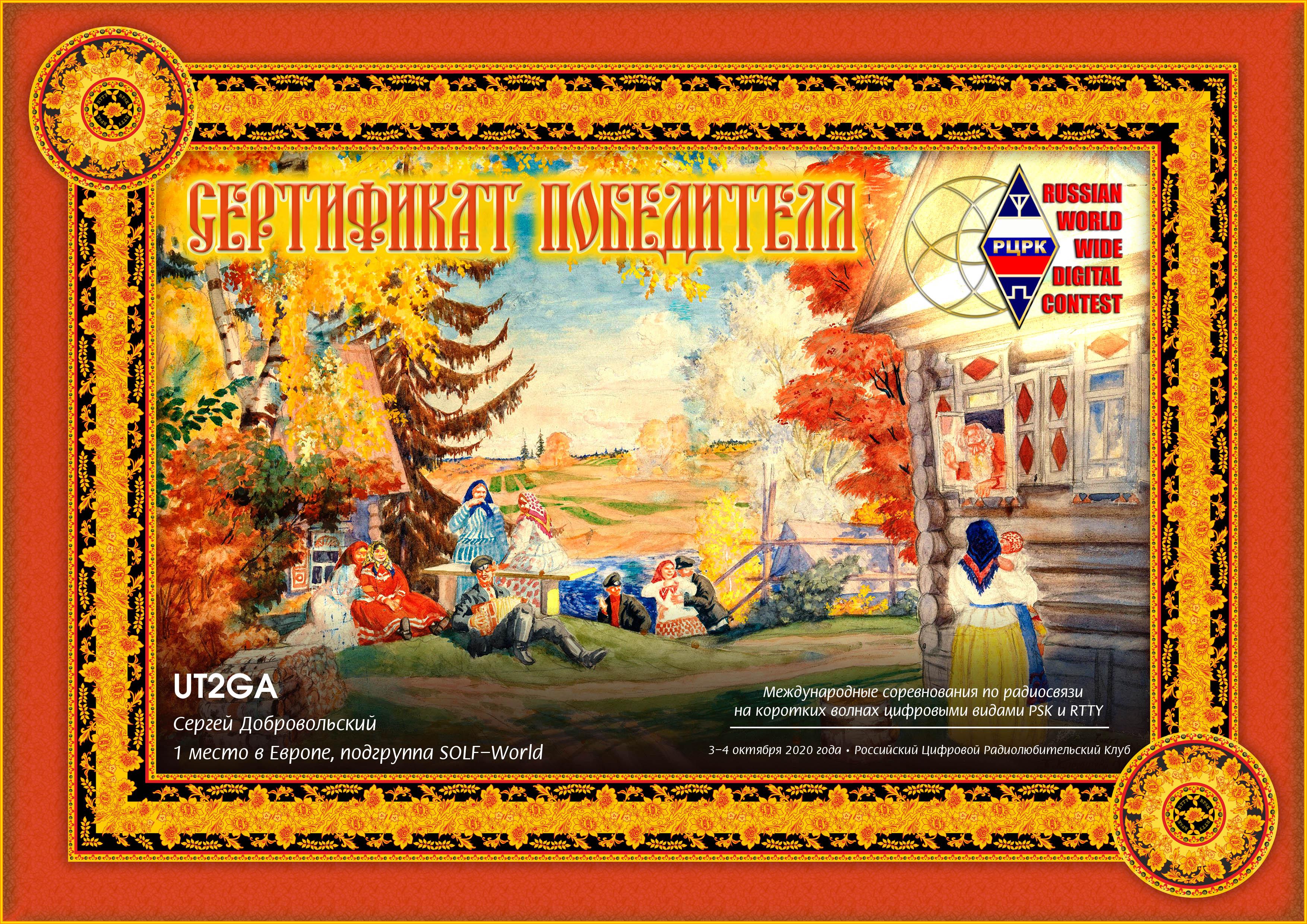 UT2GA Winner Certificate RUS-WW-DIGI CONTEST 2020 |