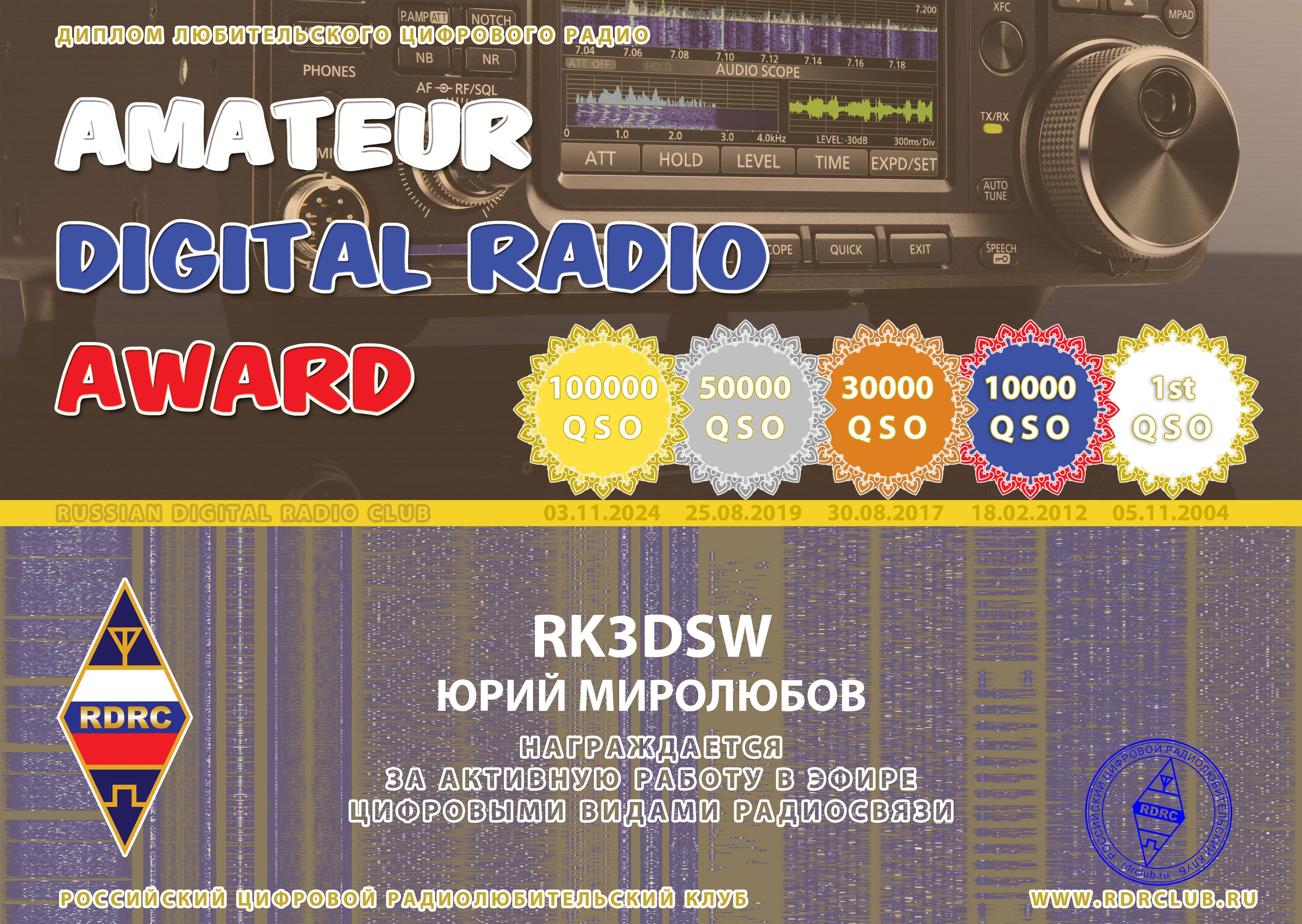 RK3DSW Certificate of participation Amateur Digital Radio Award 2021 |