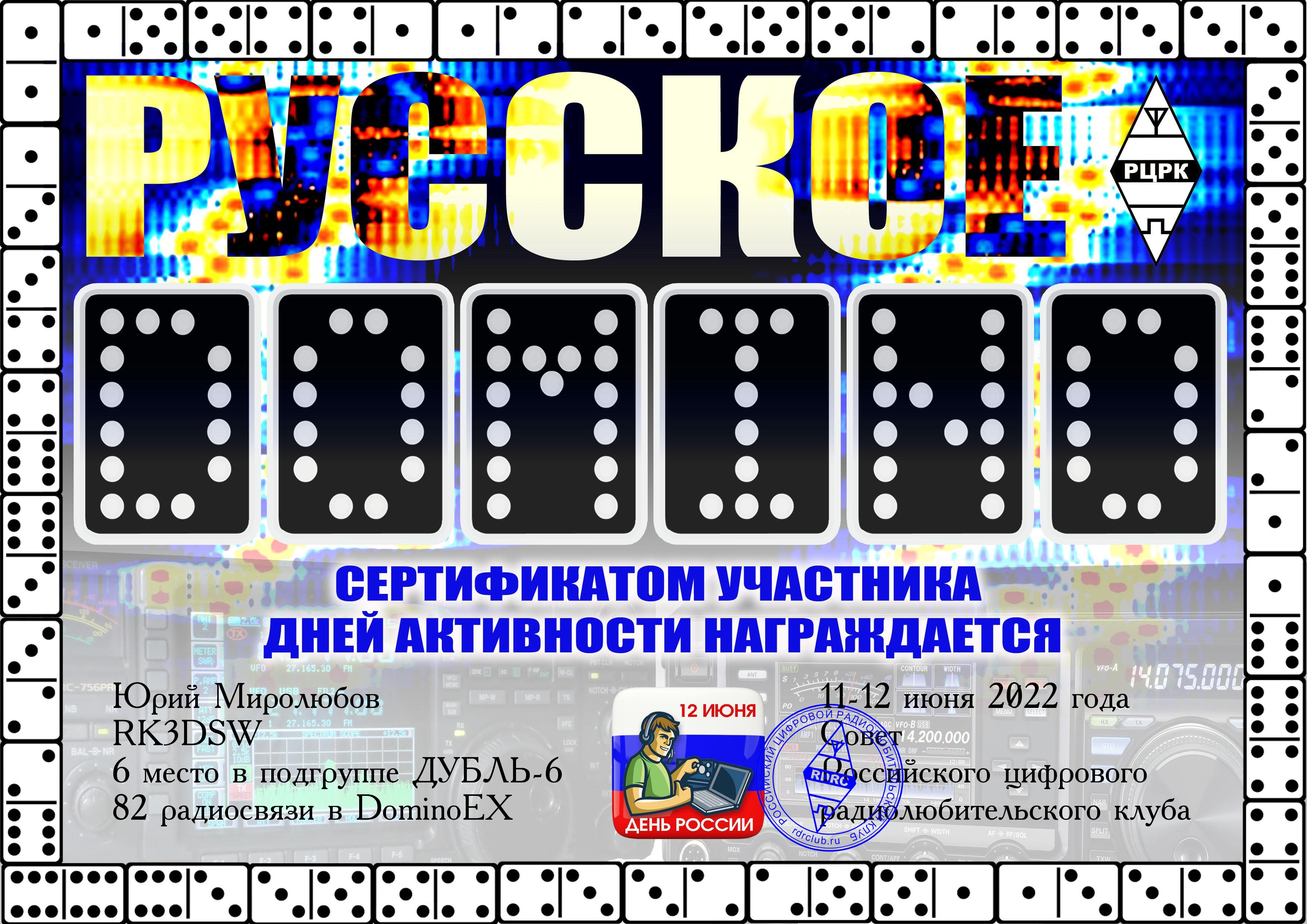 RK3DSW Certificate of participation RUSSIAN DOMINO 2022 |