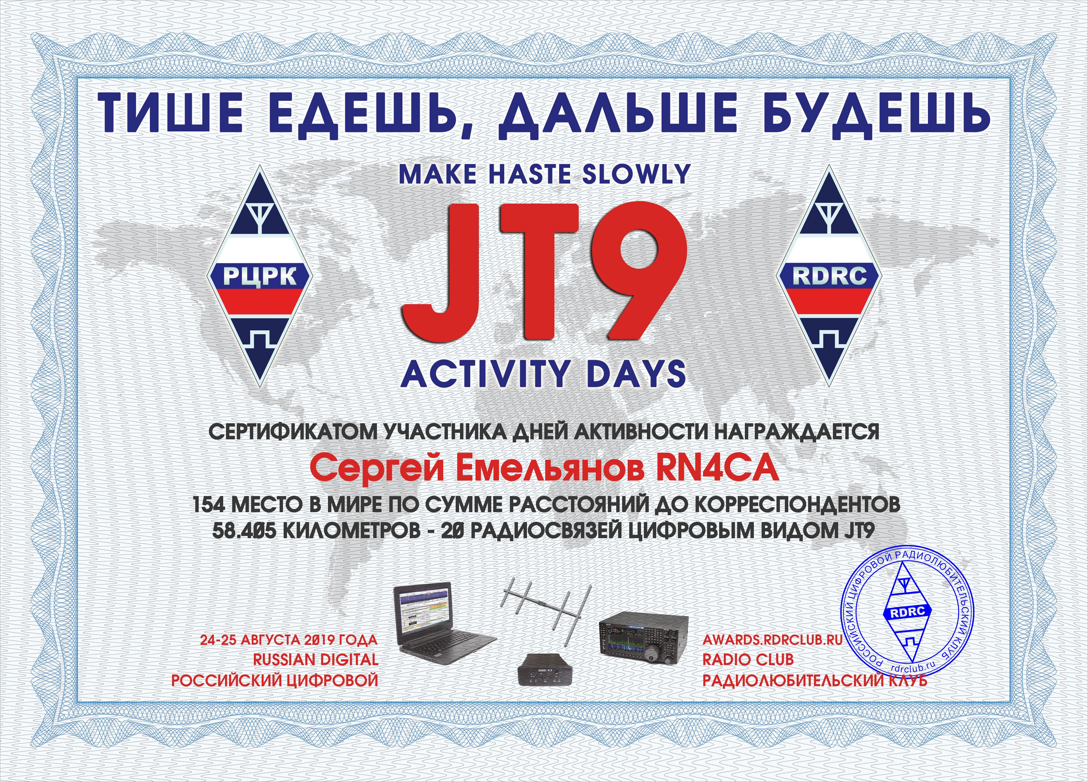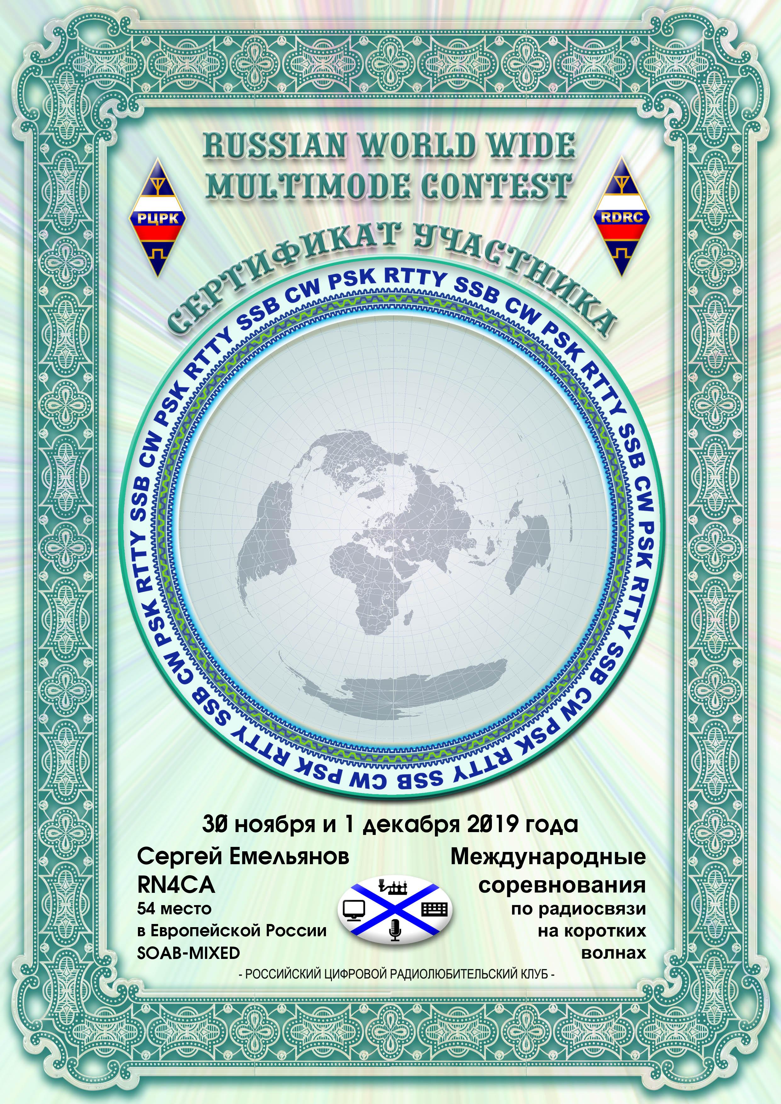 RN4CA Certificate of participation RUSSIAN WW MULTIMODE CONTEST 2019 |